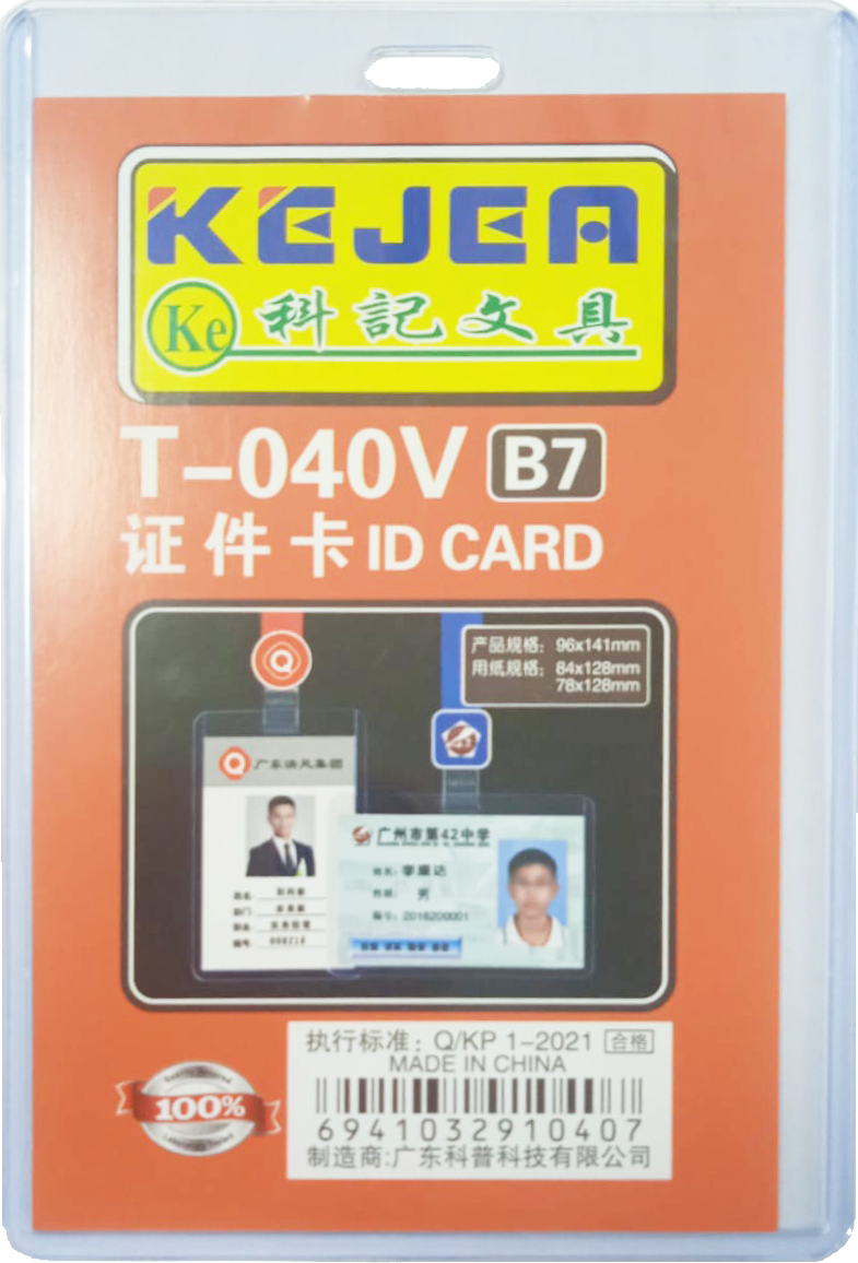 Бейдж вертикальный, 84x128мм, без зажима, жесткий, прозрачный Kejea