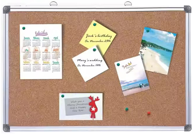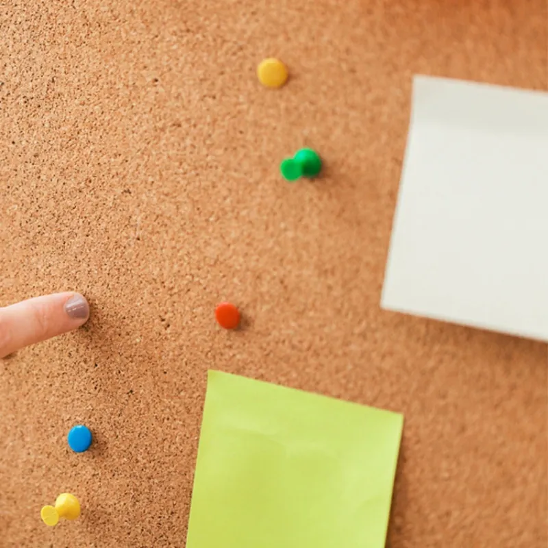 Высокая плотность материала надежно удерживает кнопки и булавки, позволяя размещать заметки, расписания, фотографии и другие материалы.