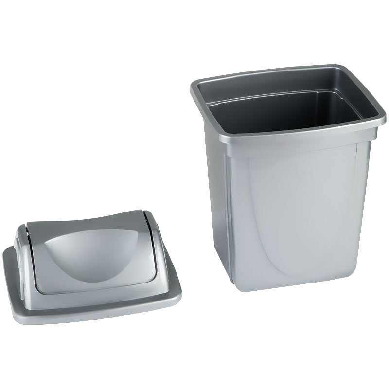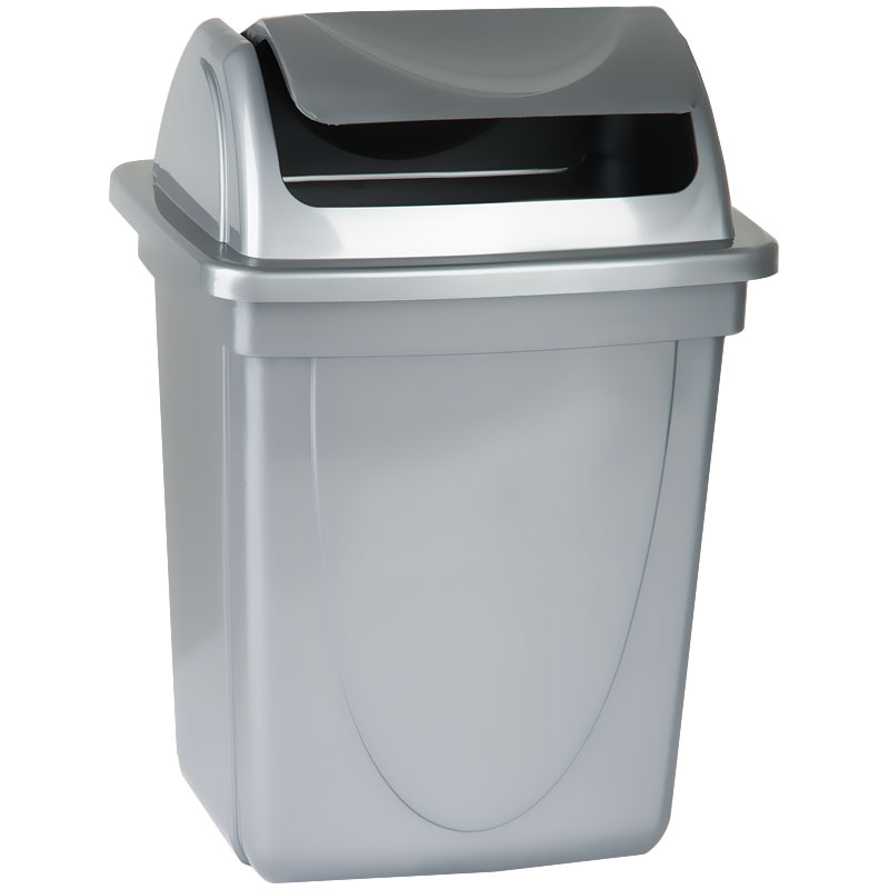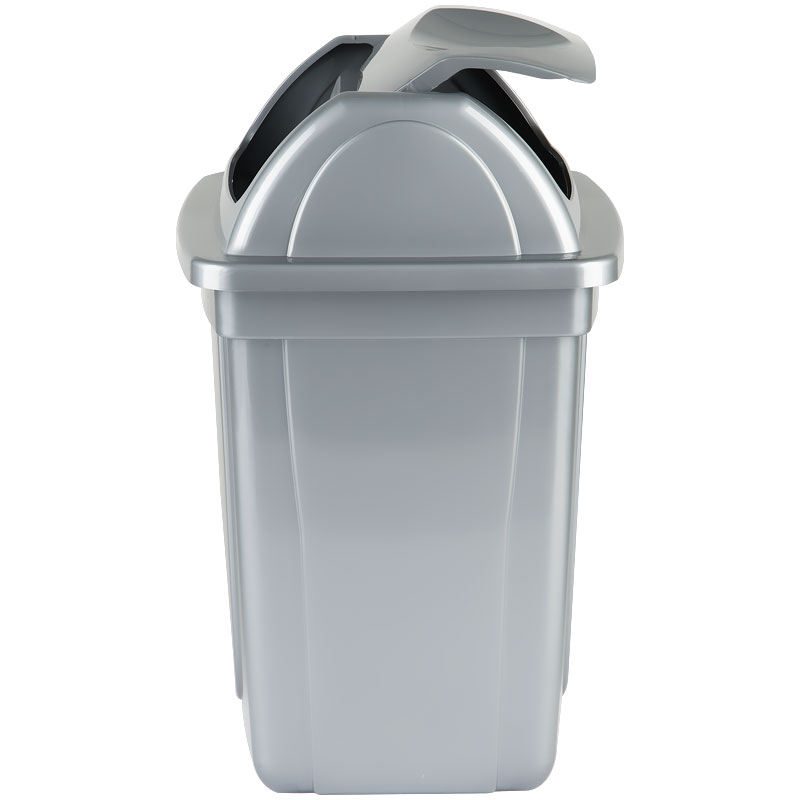 Корзина для бумаг 12л, цельная с вращающейся крышкой, серая Стамм
