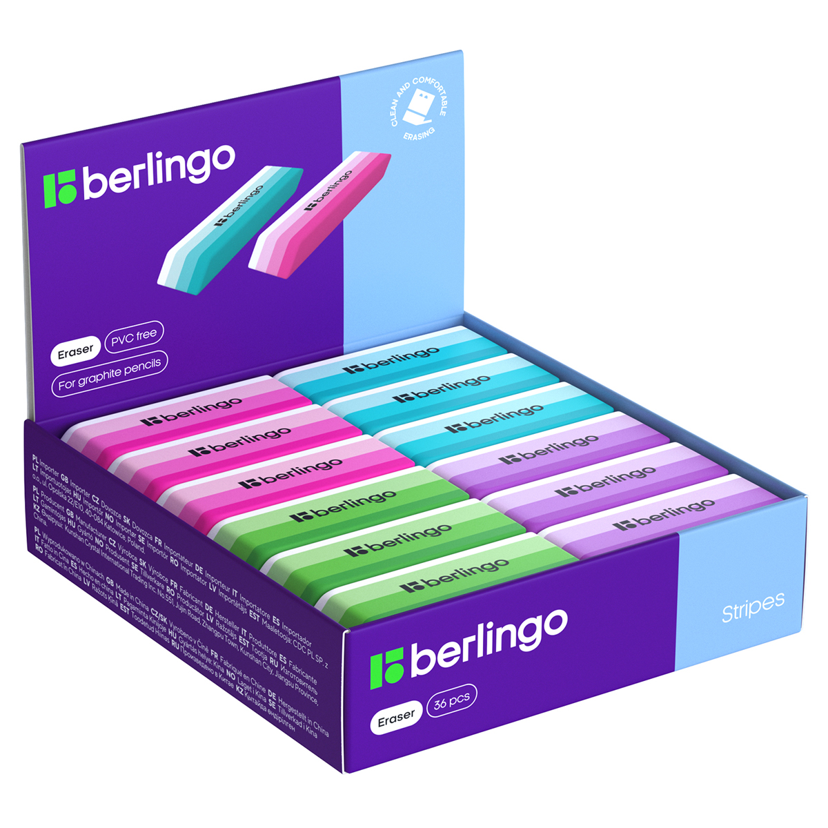 Ластик 50x19x9мм, для стирания карандаша, ассорти Berlingo Stripes
