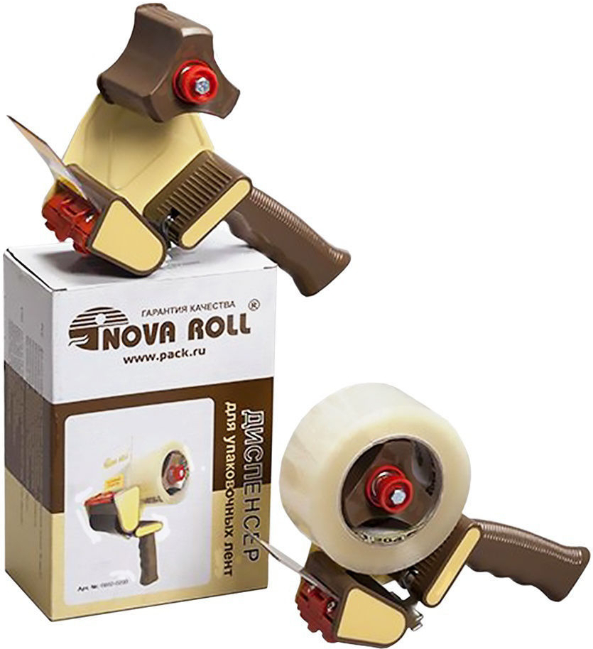 Держатель для ленты клейкой, 2' 50мм, металлический, коричневый, пластиковый ролик