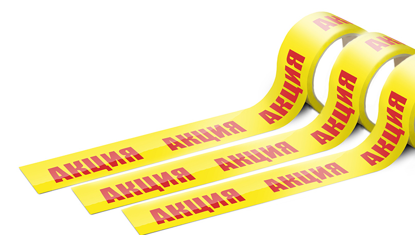Лента клейкая 48ммx66м, упаковочная, промо-скотч "Акция!", 50 мик.