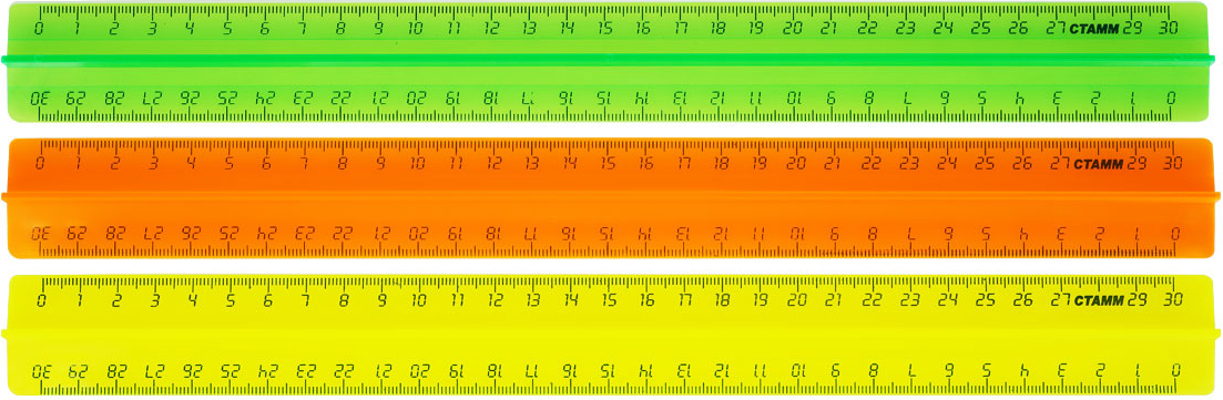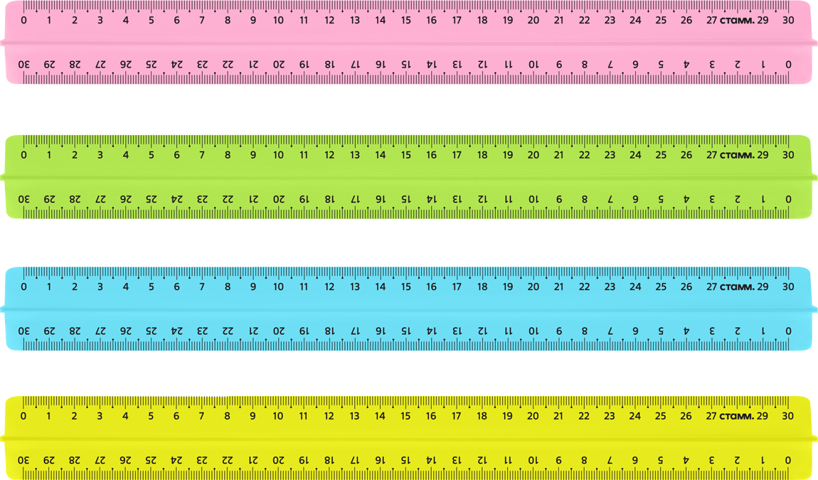 Прочный и лёгкий корпус, безопасные закруглённые края и чёткая контрастная миллиметровая шкала. Линейка представлена в ярких флуоресцентных цветах с удобным держателем по всей длине.