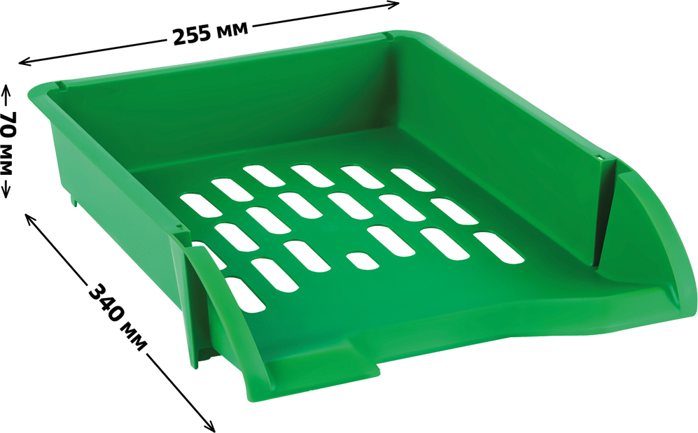 Габариты – 70х340х255 мм. Изделие высотой 70 мм вмещает до 300 листов.