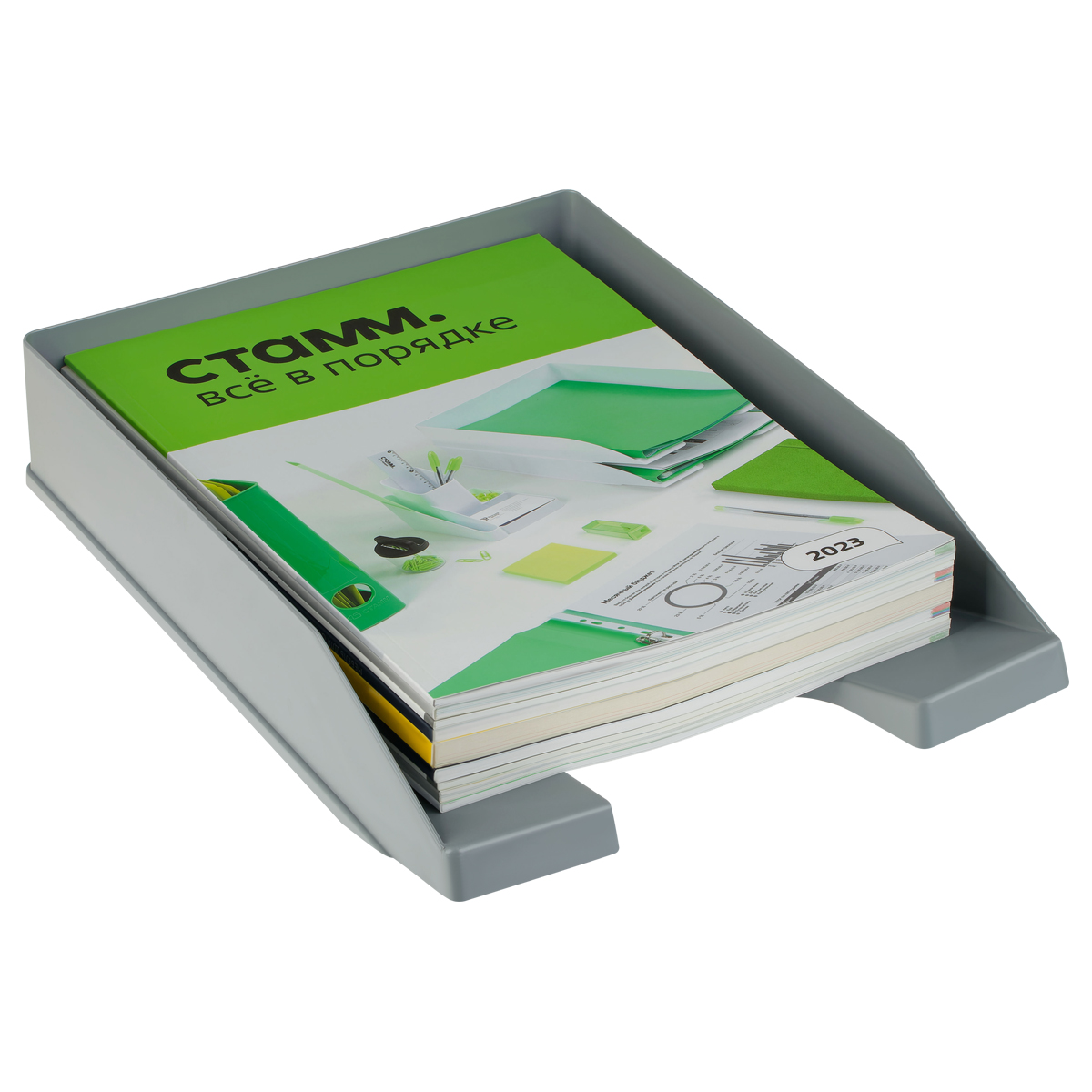 Лоток горизонтальный А4, серый Стамм Стандарт