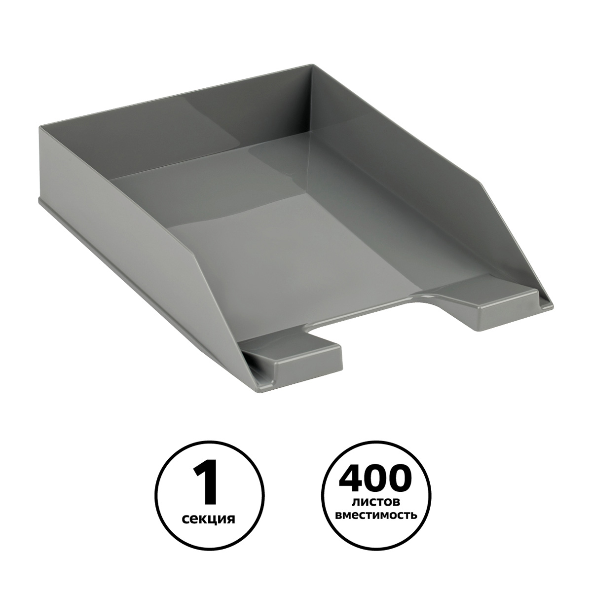 Лоток горизонтальный А4, серый Стамм Фаворит