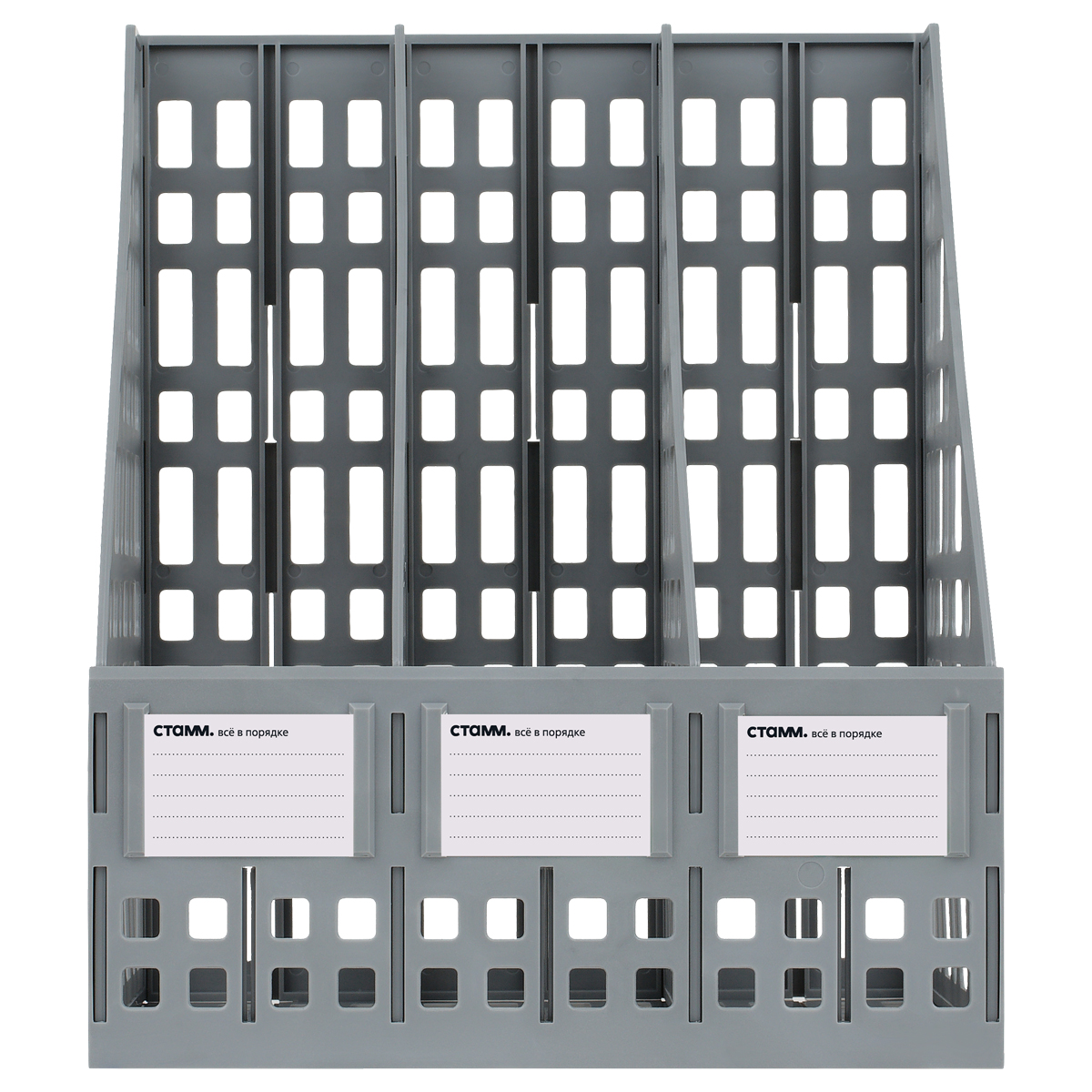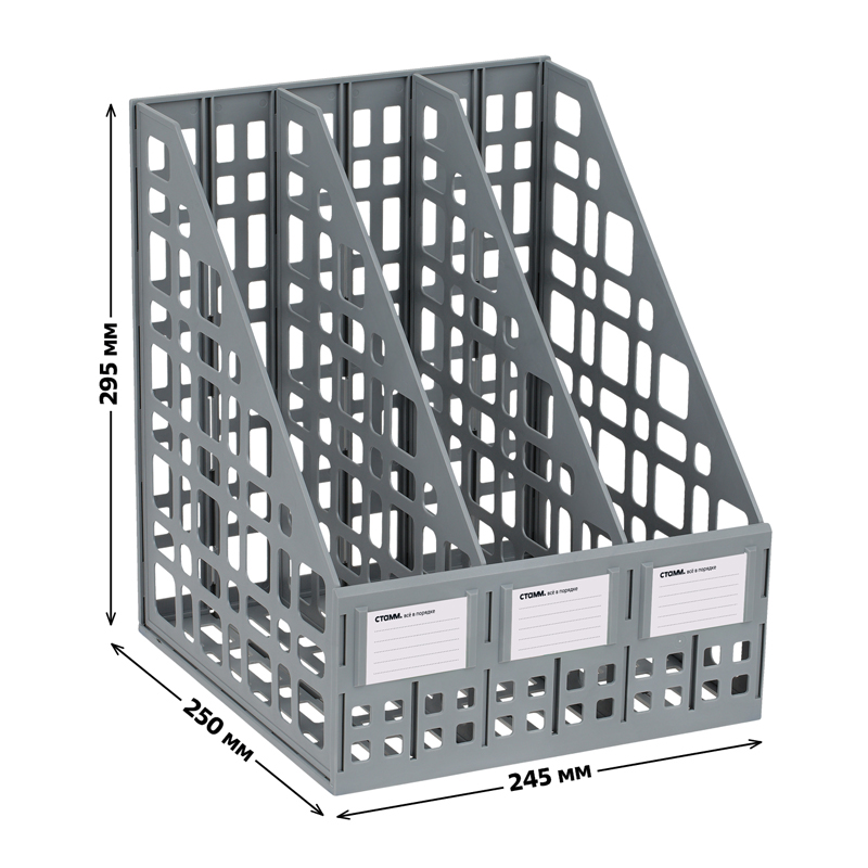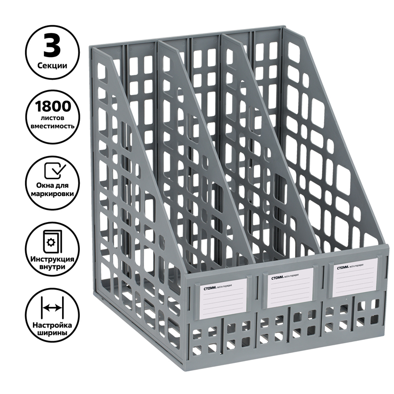 Лоток вертикальный А4, 240мм, 3-х секционный, серый, сборный Стамм