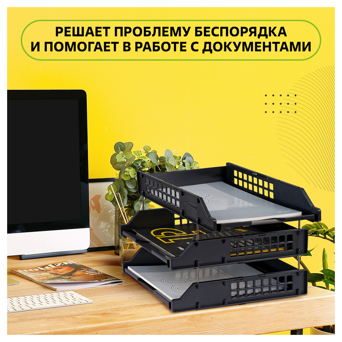 Набор из 3 горизонтальных лотков для бумаг формата А4.