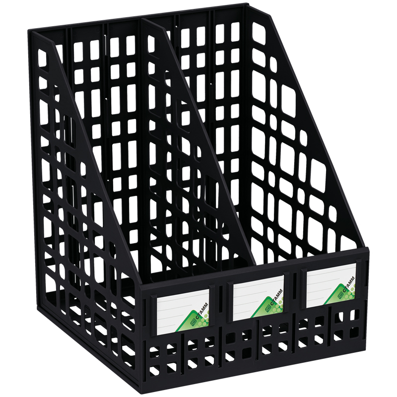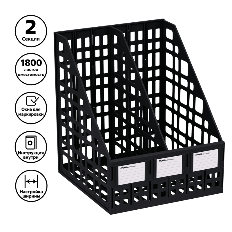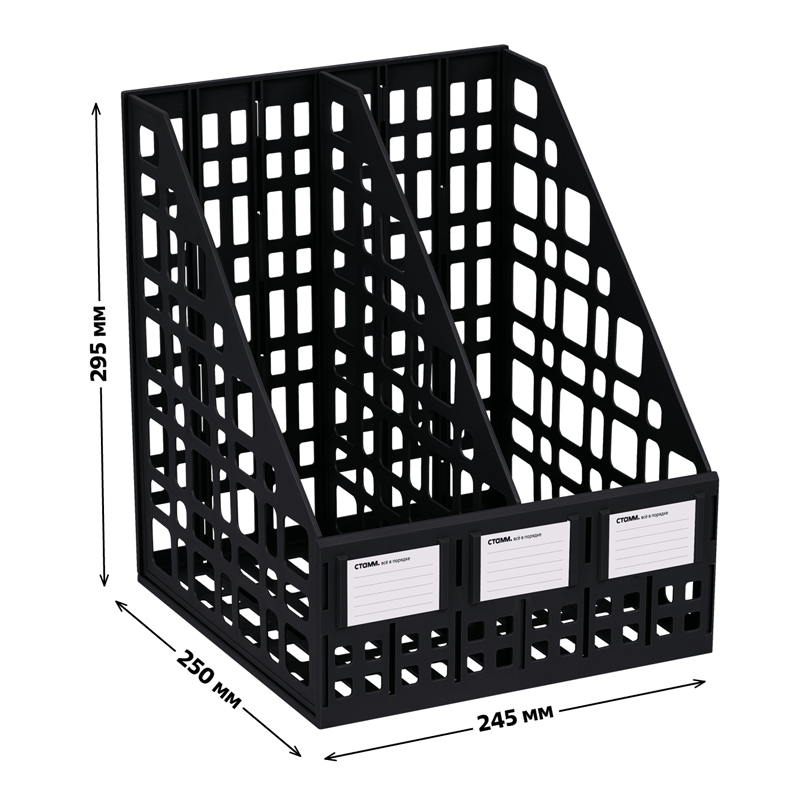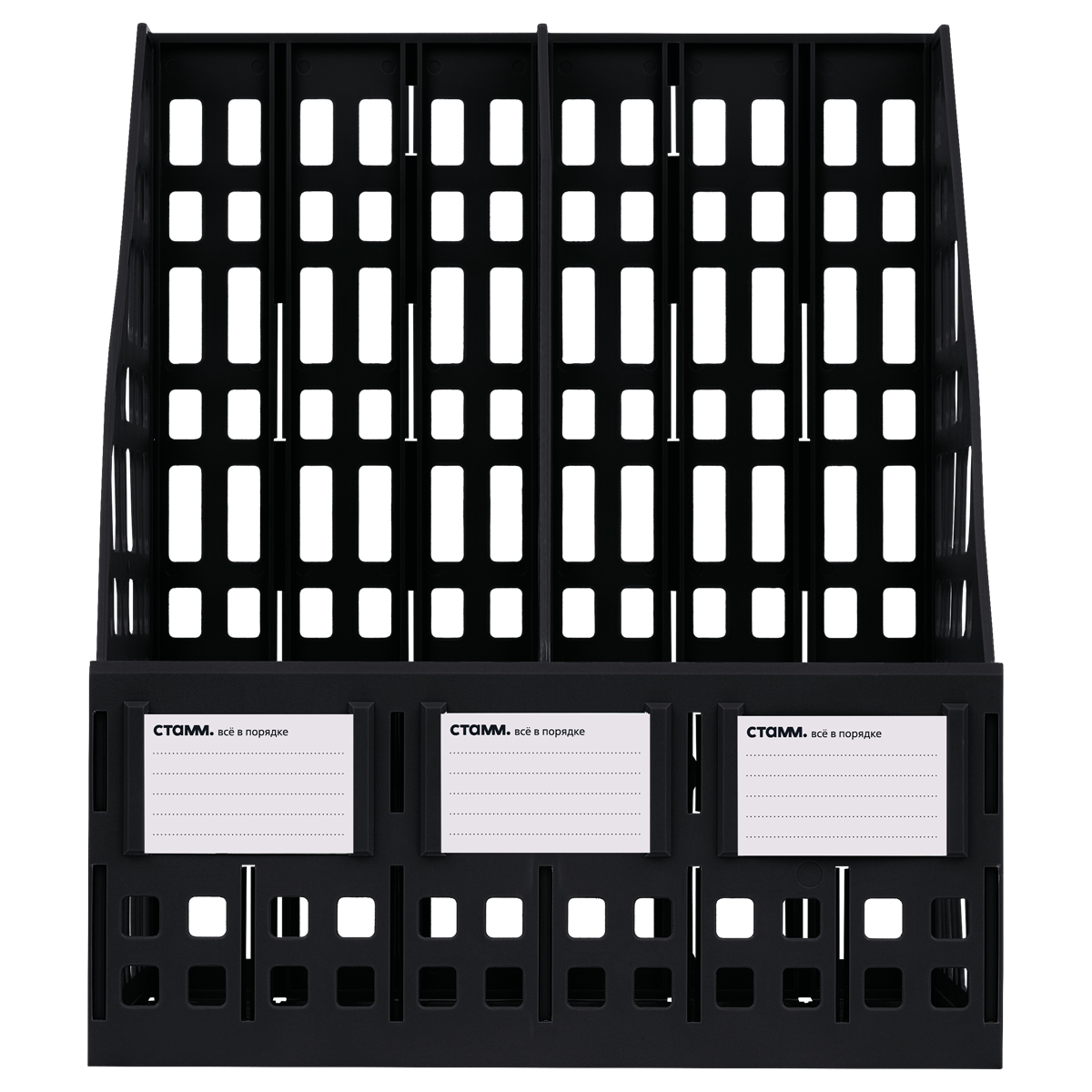 Лоток вертикальный А4, 245мм, 2-х секционный, черный, сборный Стамм