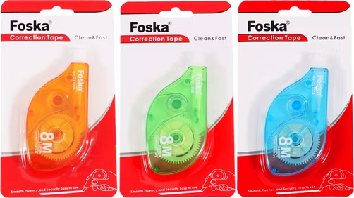 Корректирующий роллер Foska обеспечивает легкое и аккуратное исправление ошибок на бумаге. С шириной ленты 5 мм и длиной 8 метров, он подходит для использования в офисе, школе или дома.