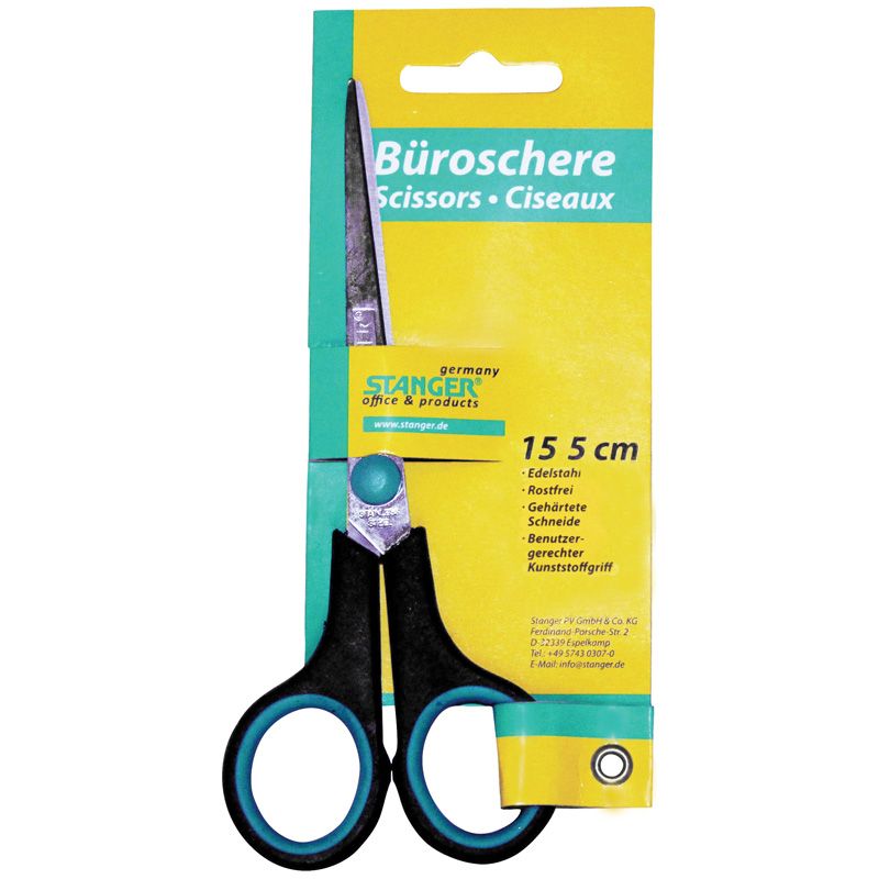 Ножницы 15.5см, ручки черно-зеленые Stanger
