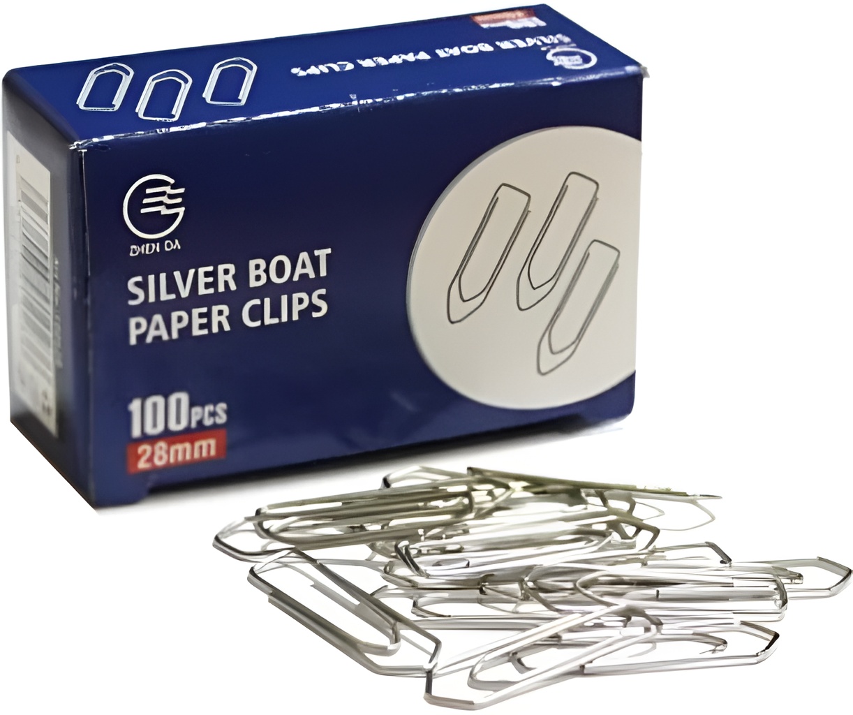 Скрепки 28мм, 100шт, "форма лодки", никелированные Zhenda