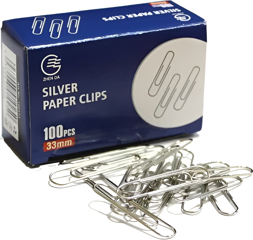 Скрепки 33мм, 100шт, круглые, никелированные Zhenda
