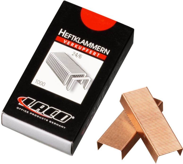Скобы для степлера №24/6, 1-30л, 1000шт, омедненные Laco