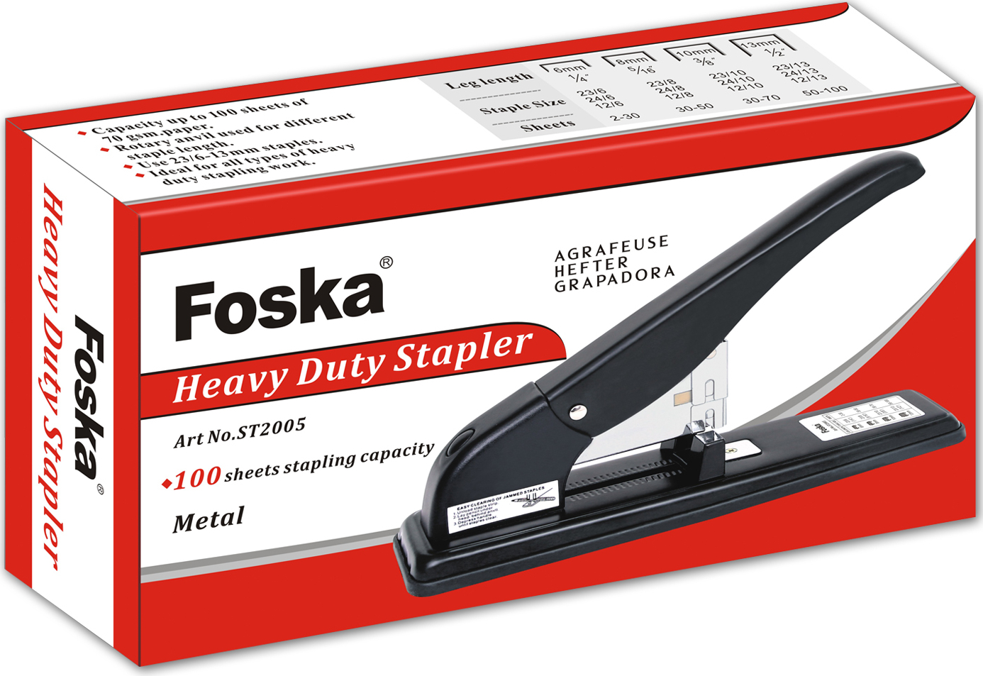 Степлер №23/6-23/13, 1-100л, длинный, металл Foska