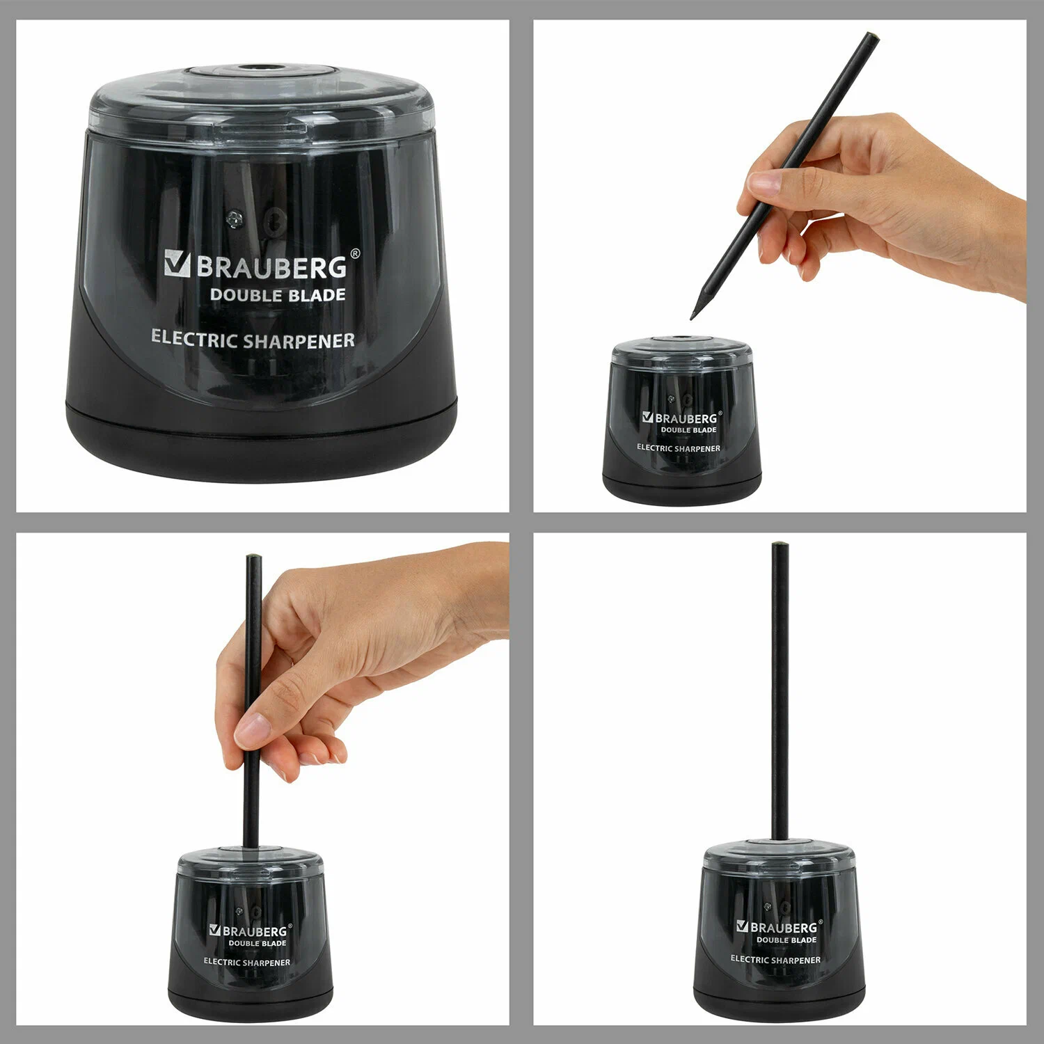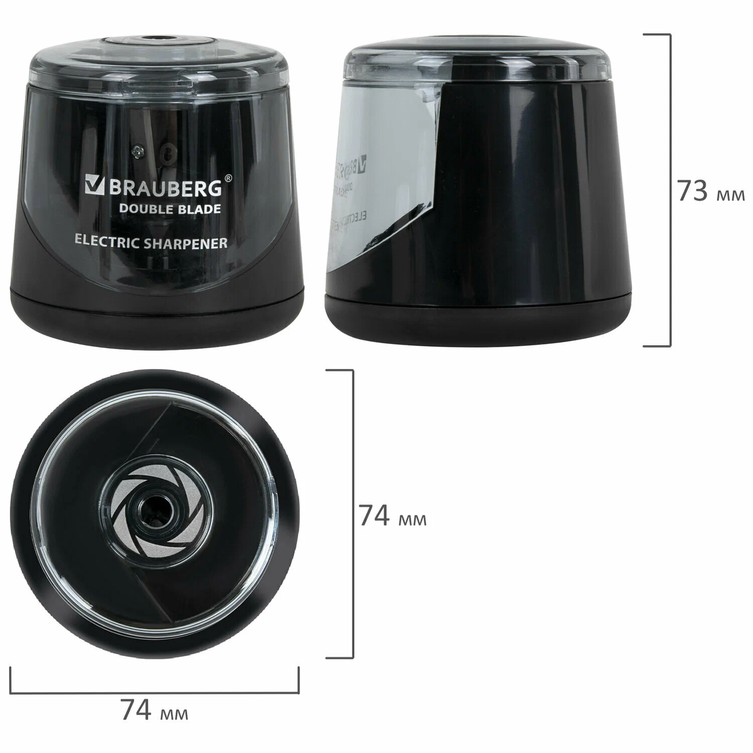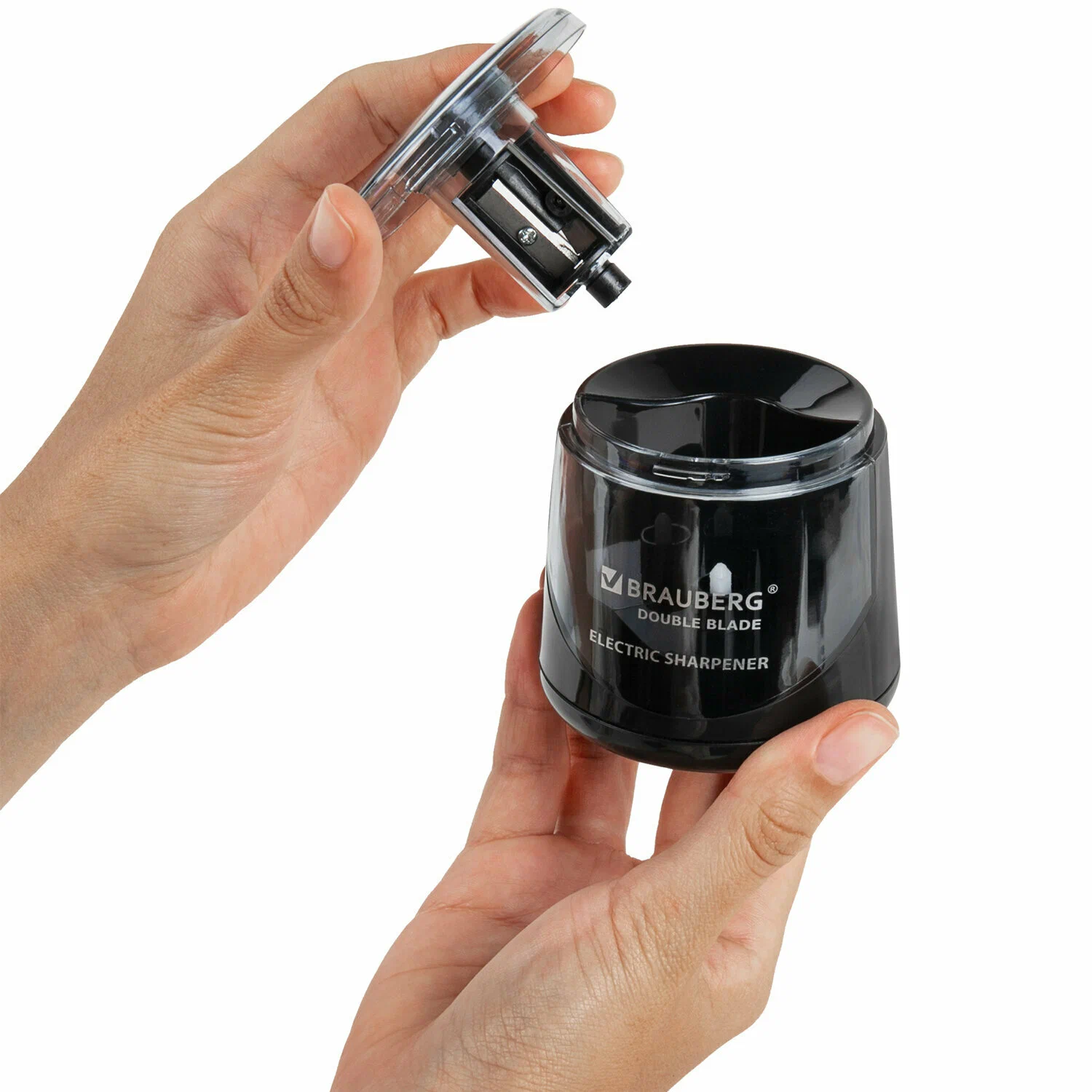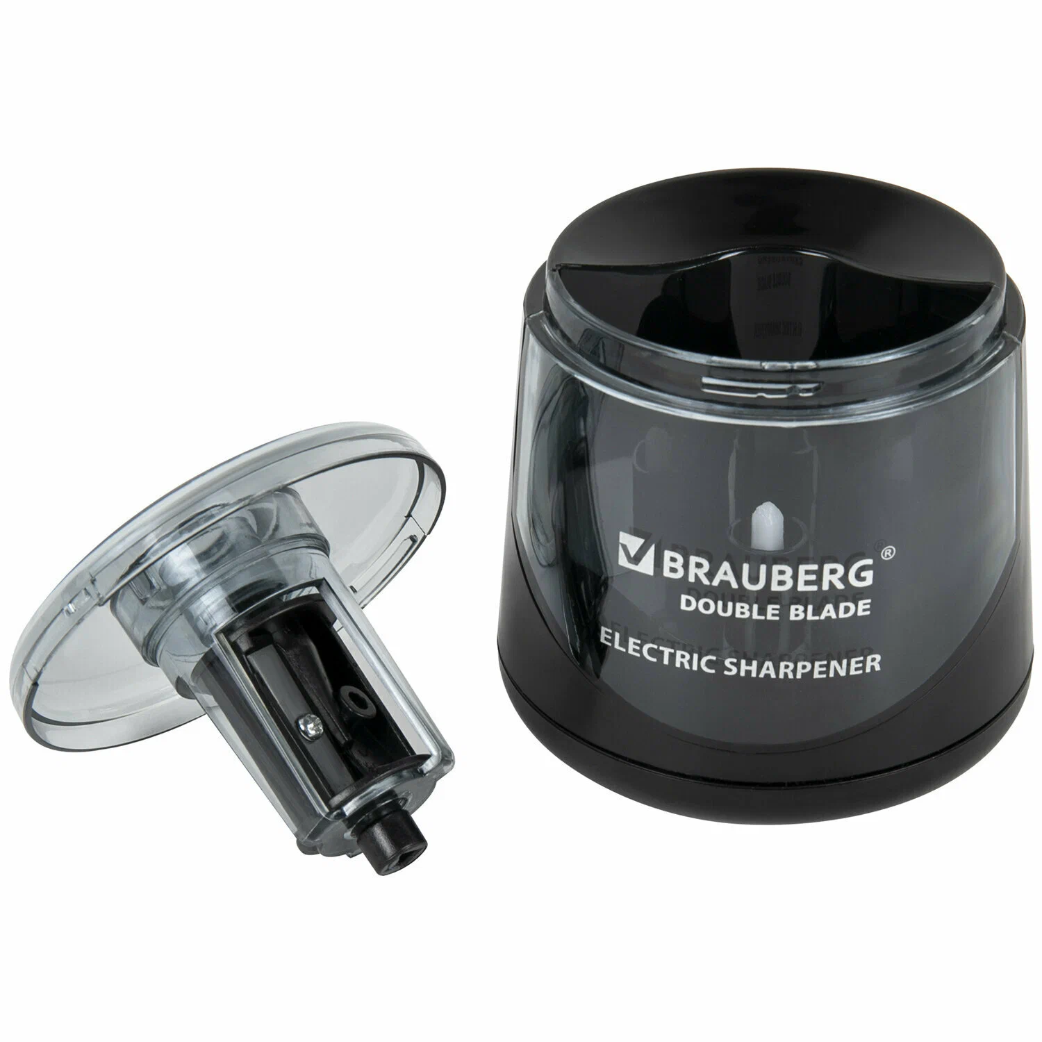 Точилка электрическая, 1 отверстие, с контейнером, двойное лезвие, Brauberg