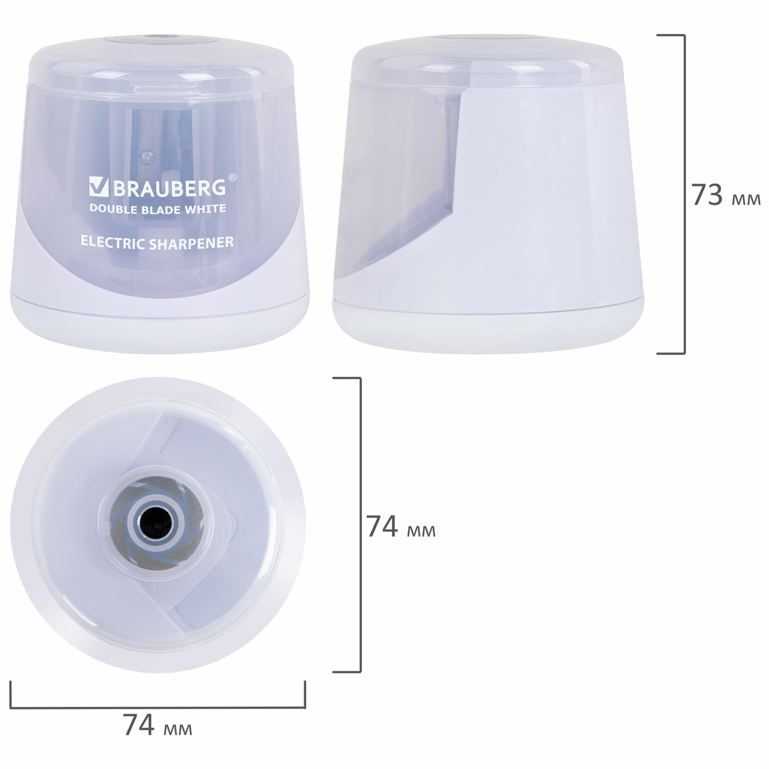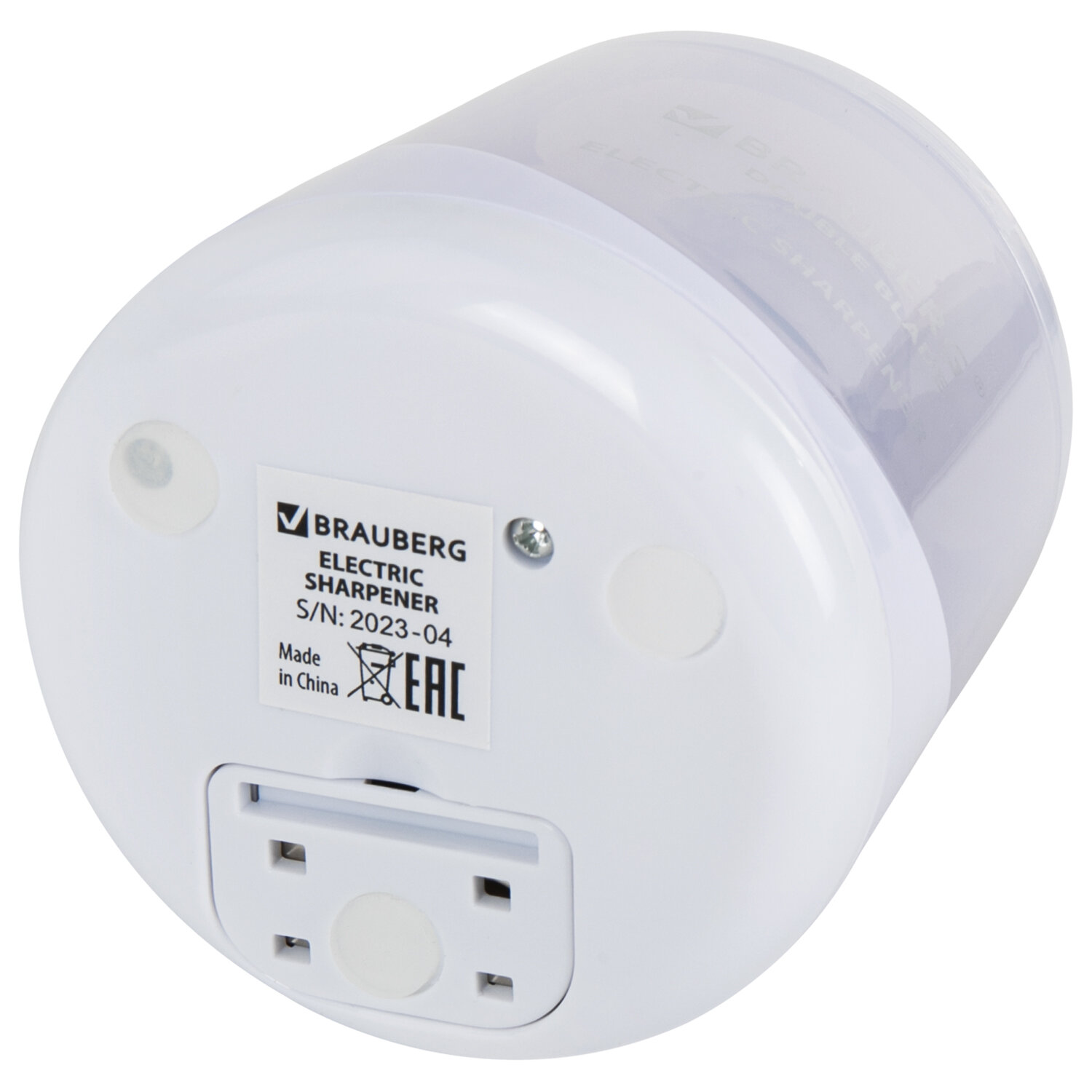 Точилка электрическая, 1 отверстие, с контейнером, белая BRAUBERG DOUBLE BLADE WHITE