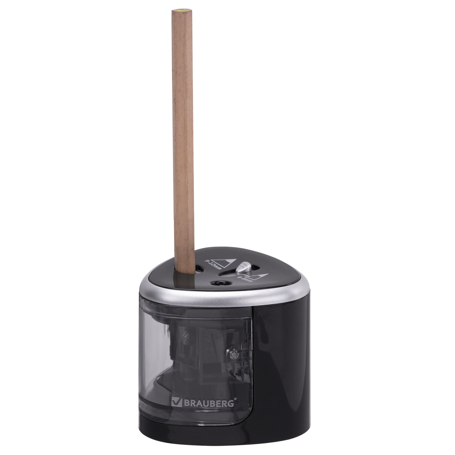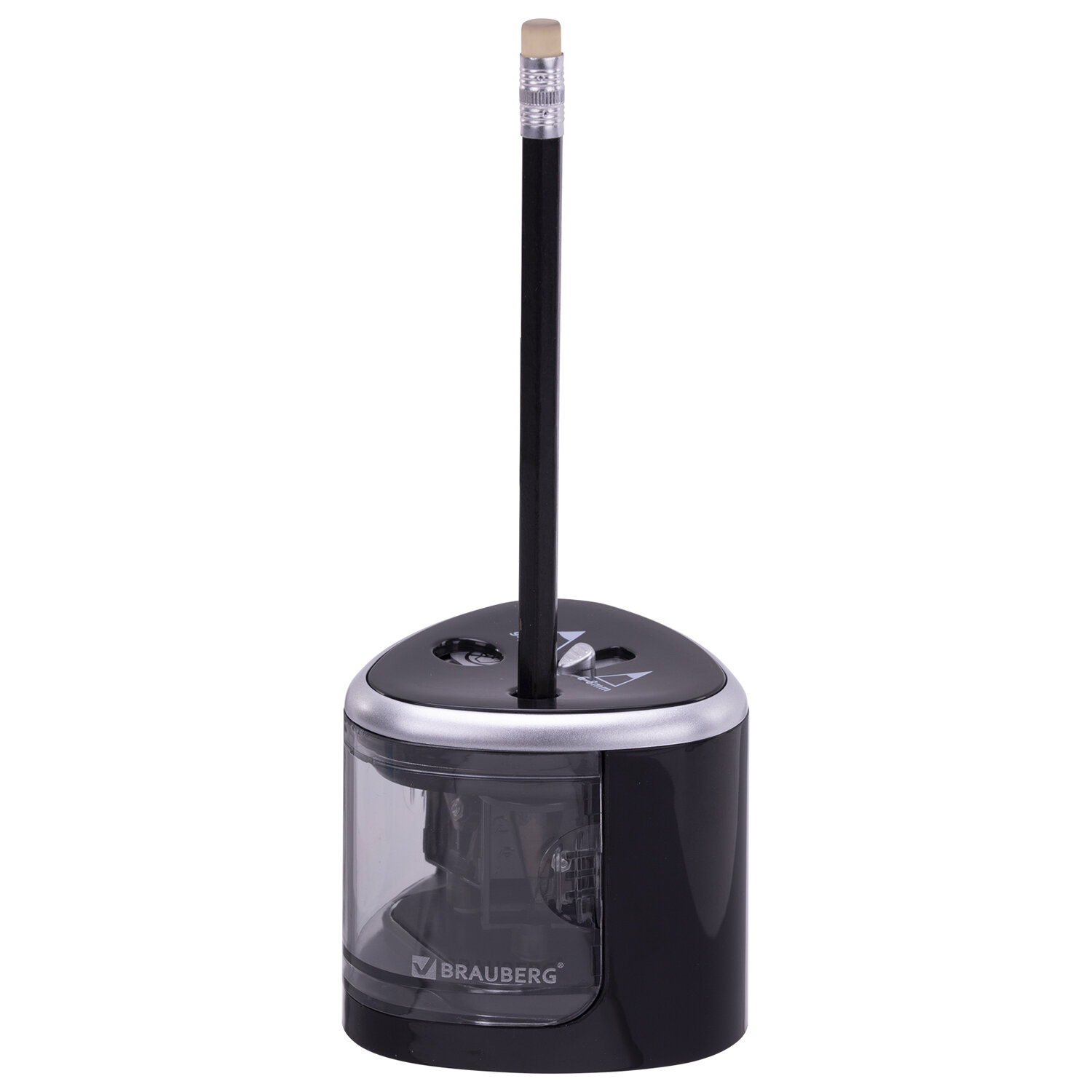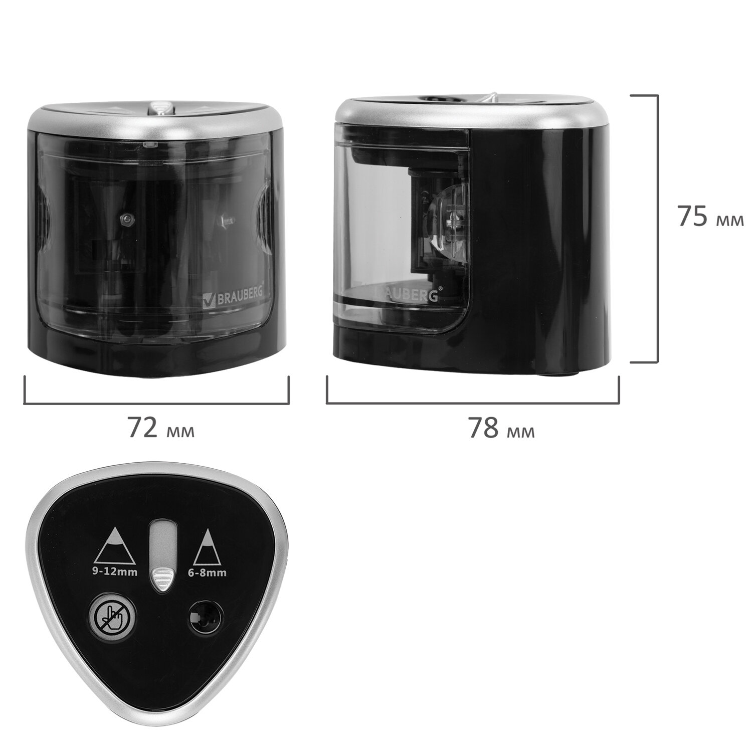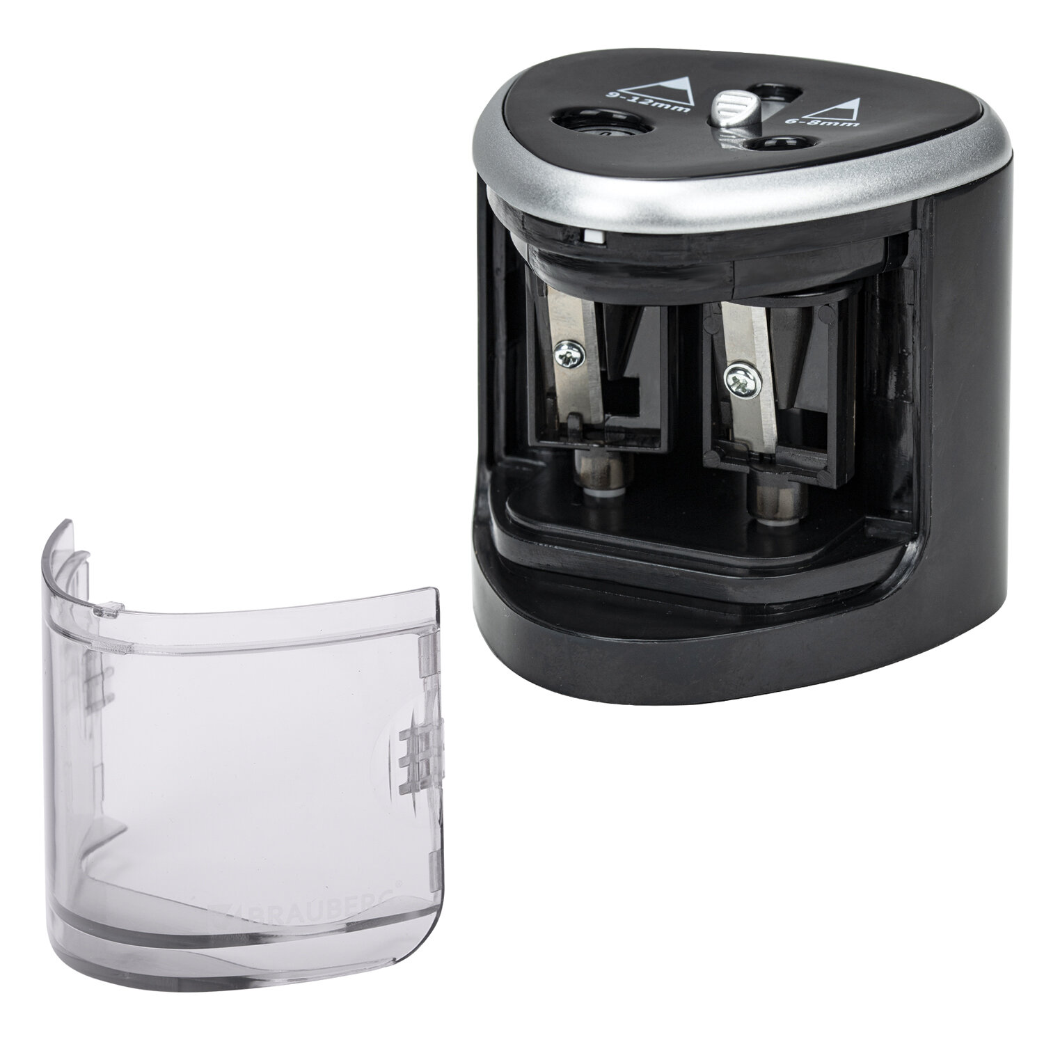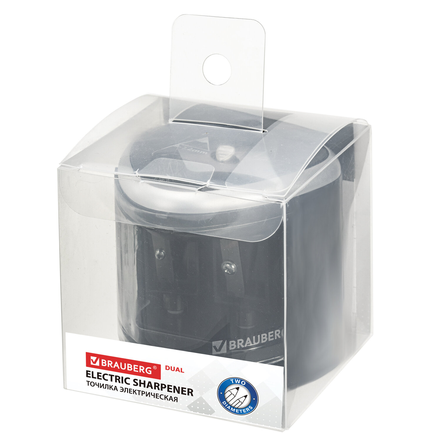 Точилка электрическая, 2 отверстия, с контейнером, черная Brauberg