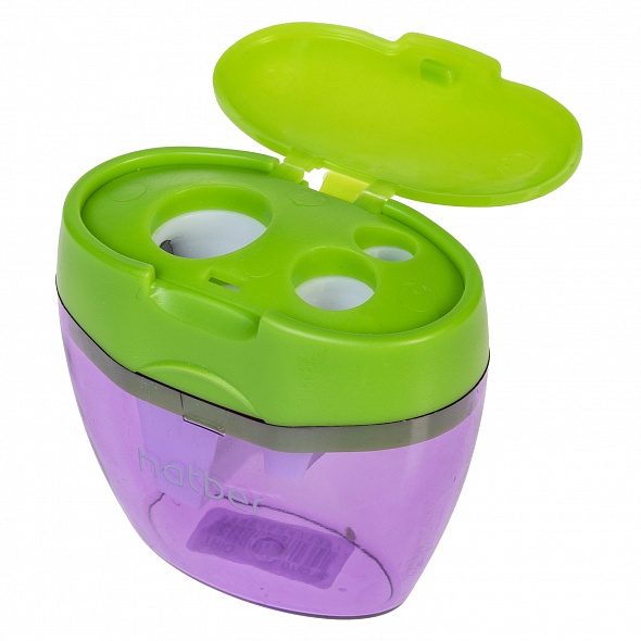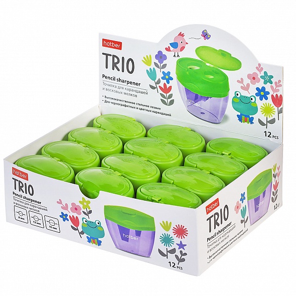Точилка 3 отверстия, с контейнером, 8/12/16мм, пластик, корпус ассорти "Hatber Trio"