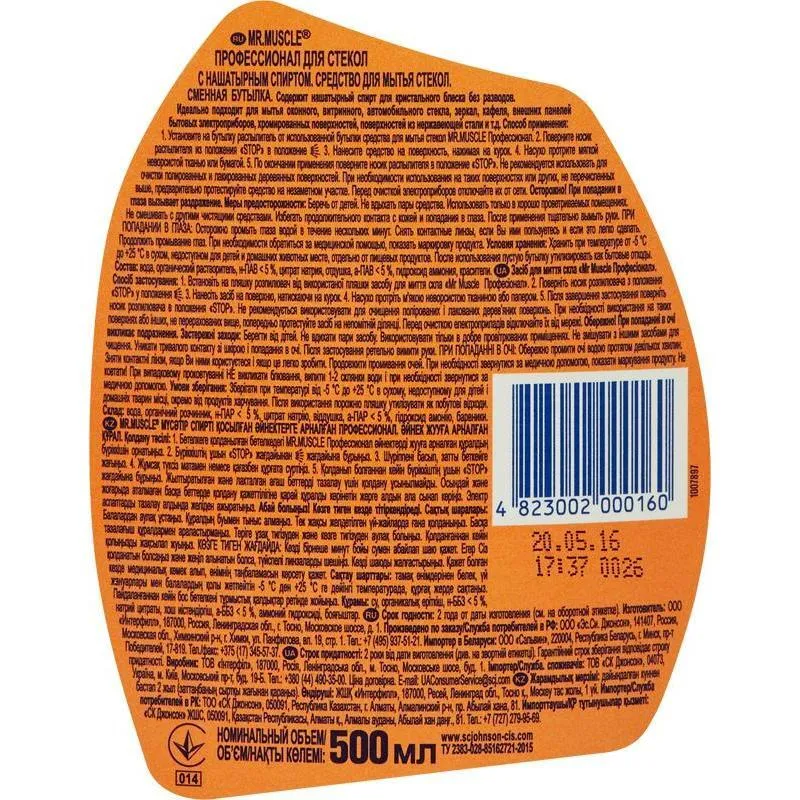 Средство для мытья стекол и поверхностей, 500 мл, сменный флакон "Мистер Мускул"