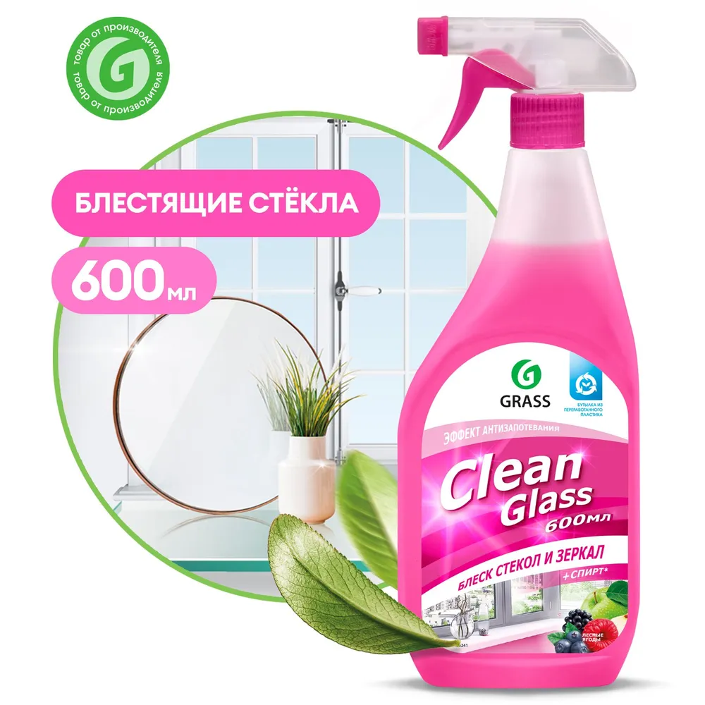 Средство для мытья стекол и поверхностей, 600мл, с триггером, "Clean Glass" лесные ягоды