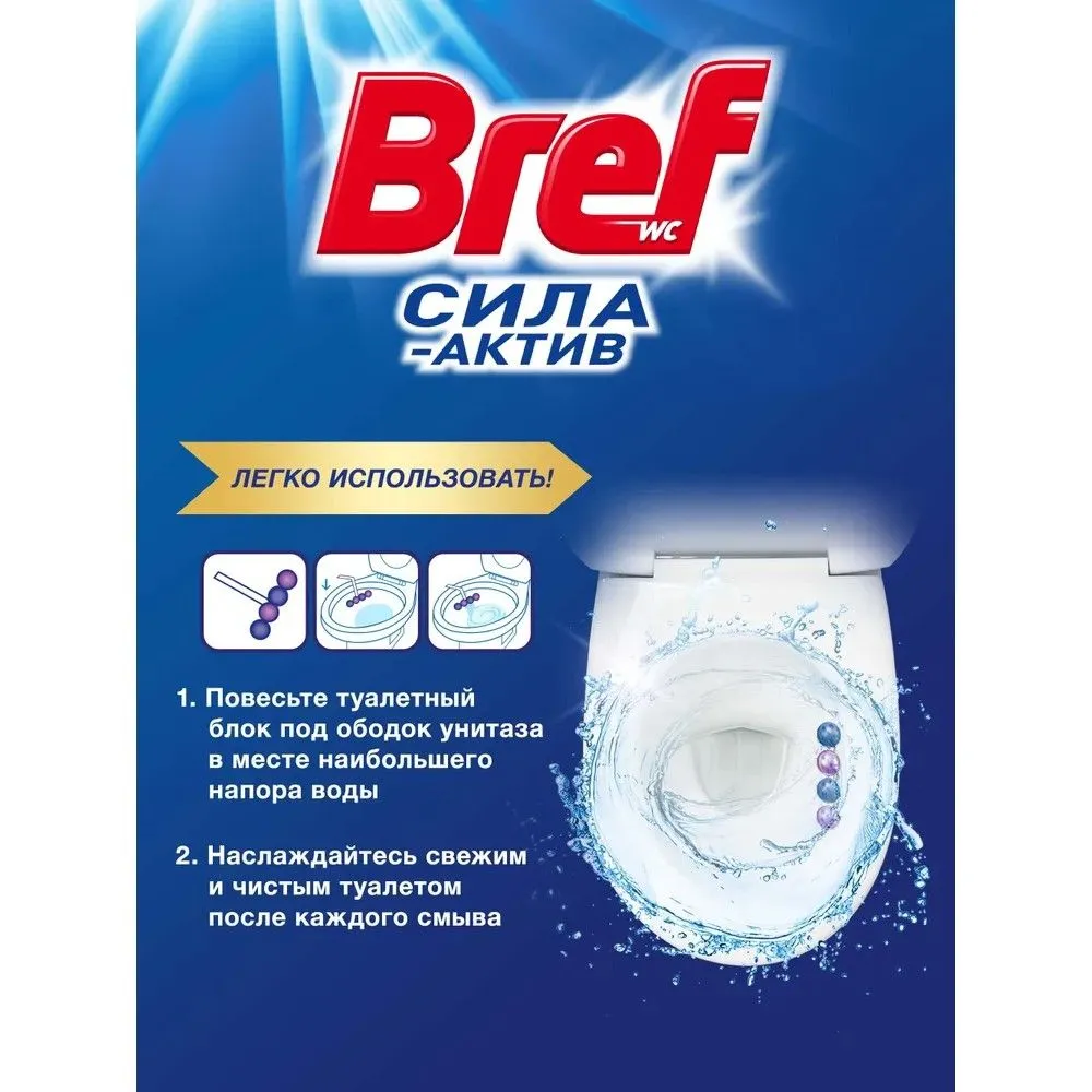 Bref Сила-Актив +50% АНТИНАЛЕТ ЭФФЕКТ – подвесной туалетный блок с усиленной формулой против известкового налета.