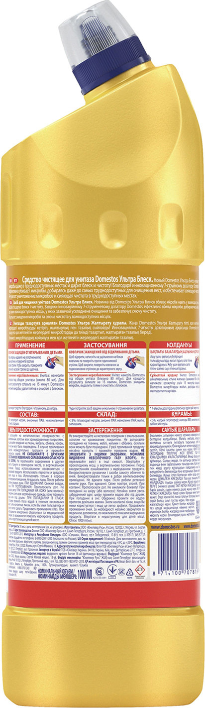 Чистящее средство для уборки,1000мл, дезинфиц.гель, Domestos Ультра блеск