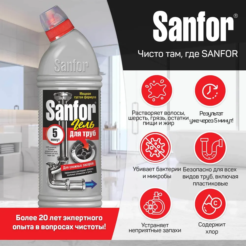 Средство для прочистки труб Sanfor, гель, 1000 мл
