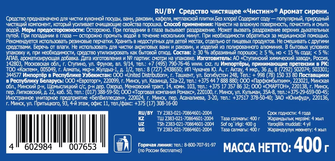 Порошок, средство чистящее 400гр, Сирень Чистин