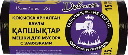 Пакет для мусора на 35л с затяжкой,черный,15шт/уп 35 рул/Р440