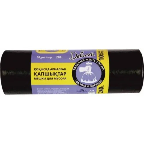 Пакет для мусора на 240л, 10шт., черный, 45мкр., "Deluxe"