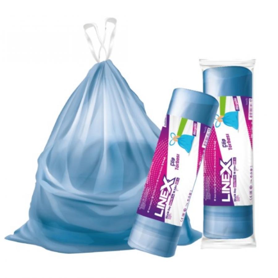 Пакет для мусора на 30л с затяжкой, 15шт, синий Linex