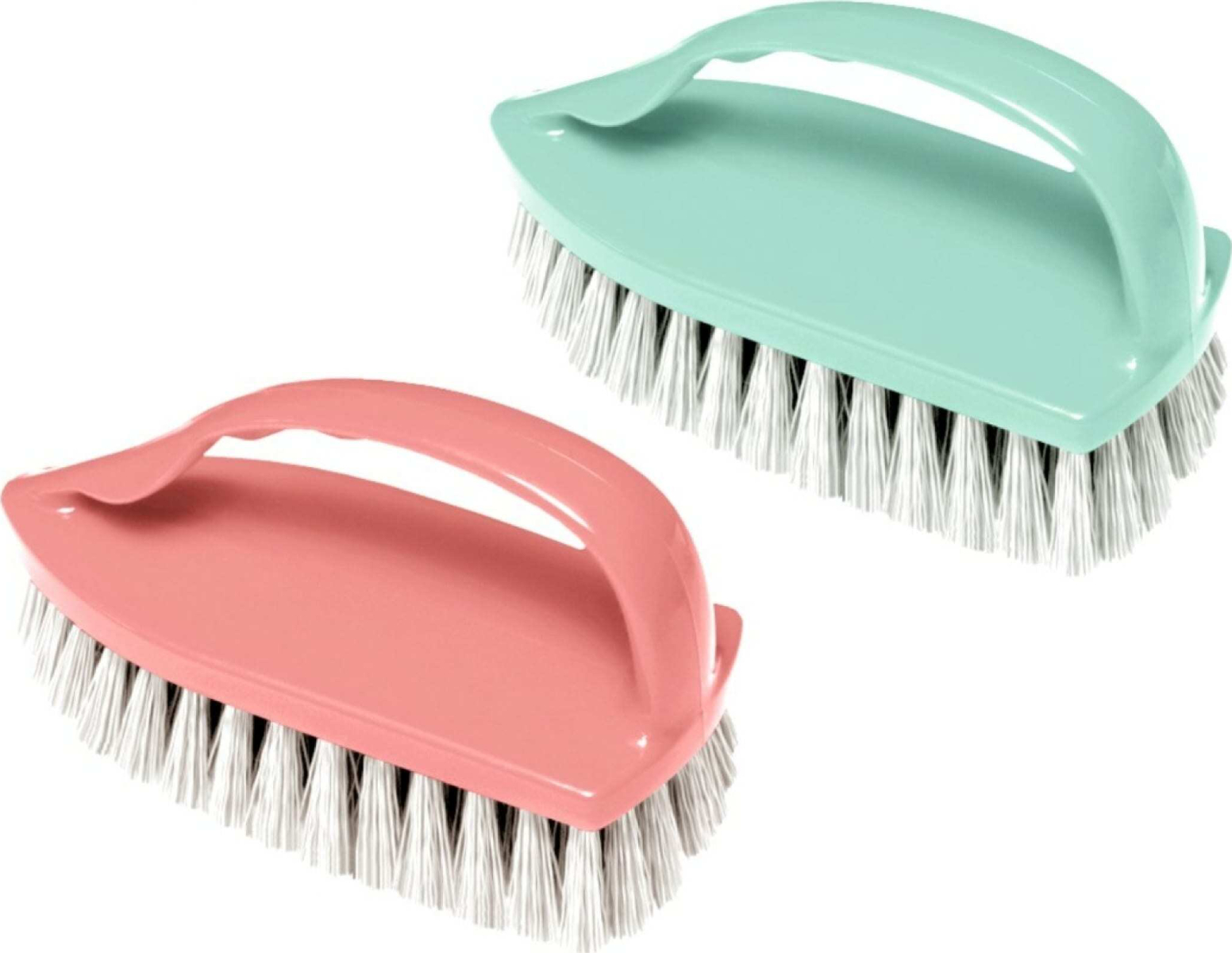 Щетка имеет удобную ручку с упором для большого пальца и твердую щетину.
