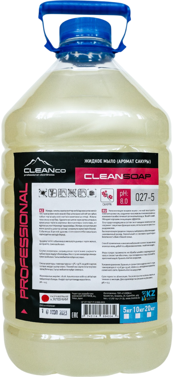 Мыло жидкое 5л Сакура, в бутылке, "Clean Soap"