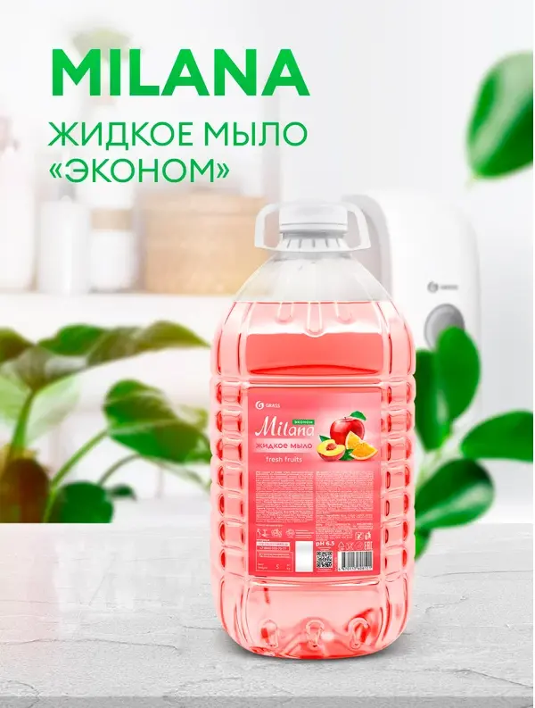 Мыло жидкое 5л Fresh Fruits, эконом в бутылке,"Milana"
