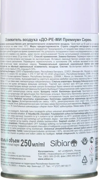 Универсальный сменный аэрозольный баллон Do-Re-Mi - для автоматического освежителя воздуха.