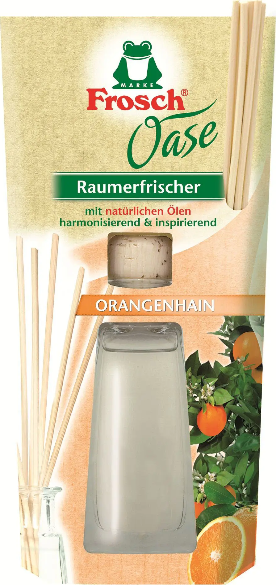 Освежитель-Аромадиффузор 90мл, Frosch с эфирными маслами с палочками, "Апельсиновая роща"