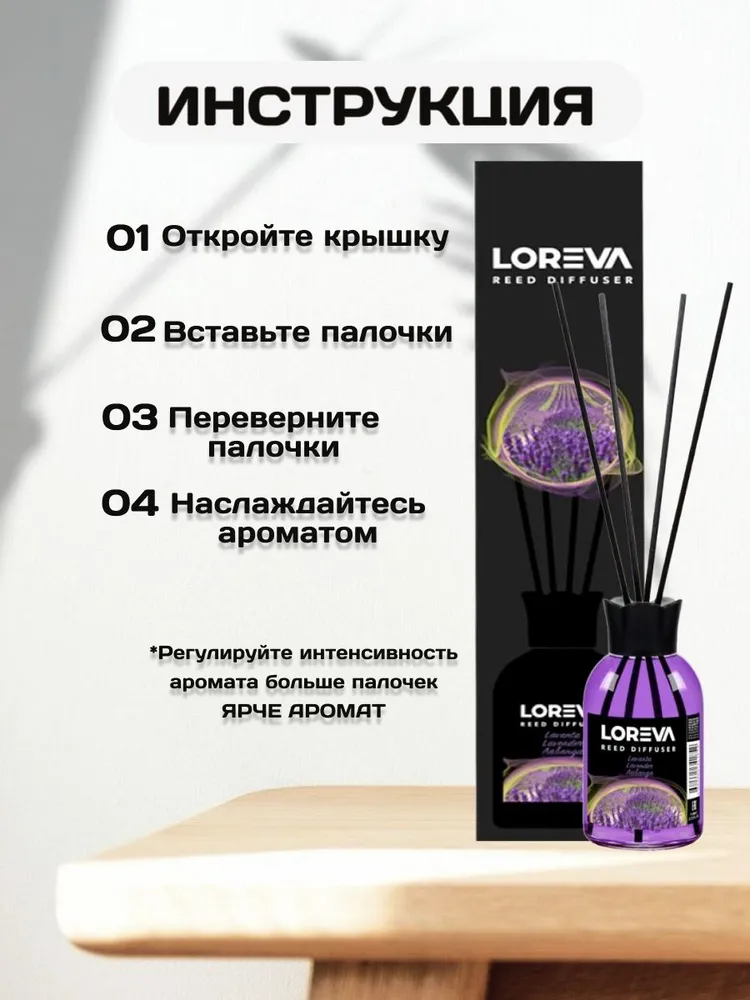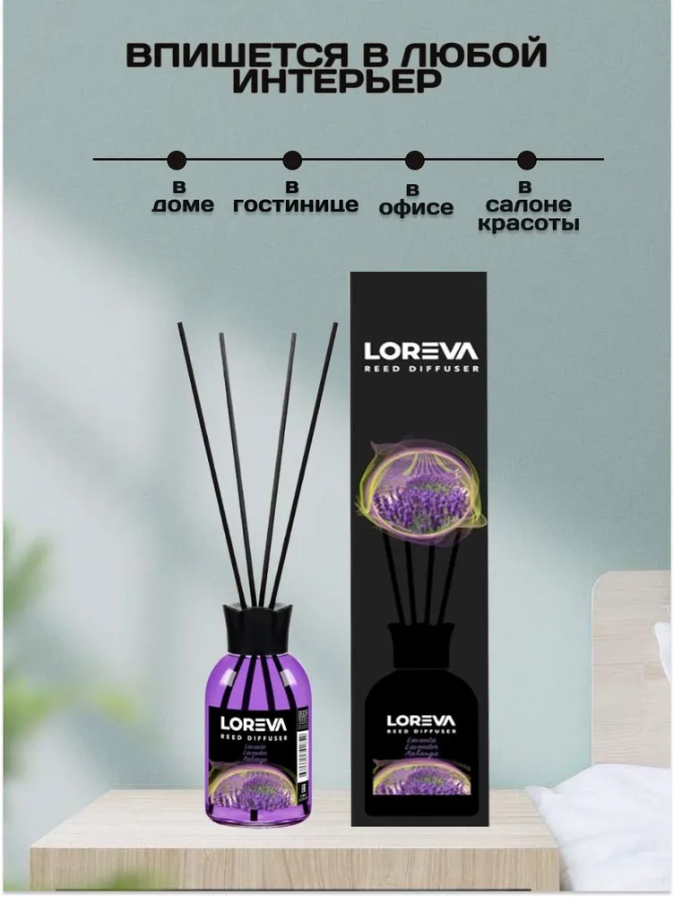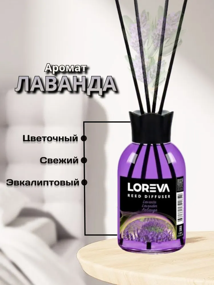 Освежитель-Аромадиффузор 110мл, Loreva с эфирными маслами с палочками, "Лаванда"