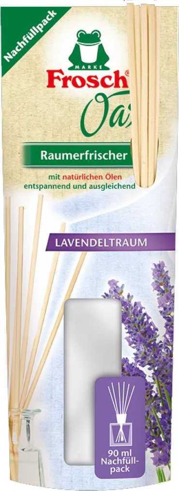 Освежитель-Аромадиффузор 90мл, Frosch с эфирными маслами с палочками, сменная "Лаванда"