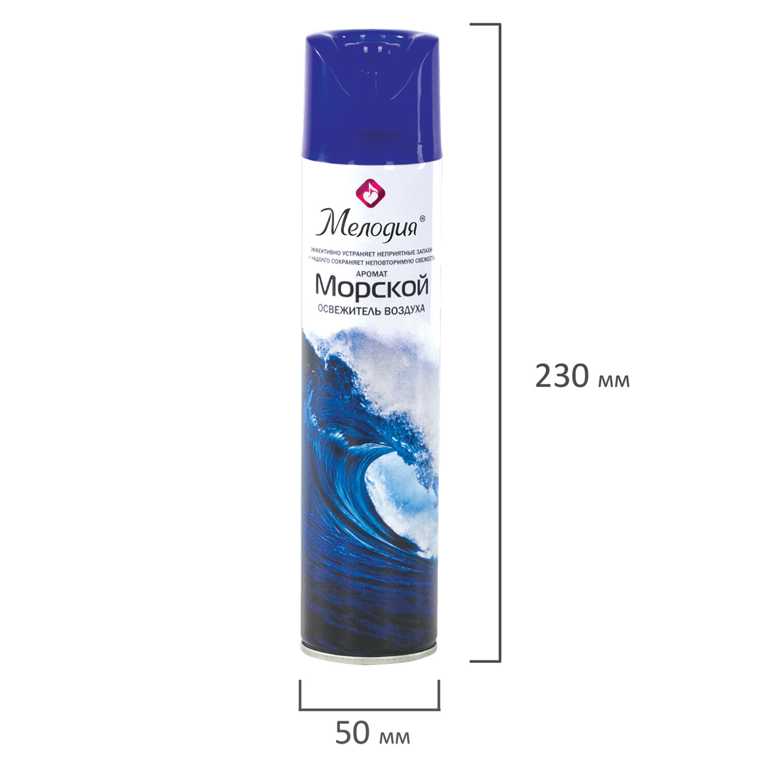 Аэрозольный освежитель воздуха МЕЛОДИЯ "Морской" объемом 300 мл благодаря продуманной конструкции распылителя будет служить максимально долго, ликвидируя нежелательные запахи и насыщая закрытые пространства приятным ароматом моря. Он поможет в ситуации, когда нет возможности быстро и качественно проветрить помещение, но в нём находится или ожидается много людей.