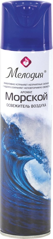 Освежитель воздуха МЕЛОДИЯ "Морской" быстро и эффективно устраняет неприятные запахи и освежает воздух в жилых и бытовых помещениях. Имеет приятный стойкий аромат, который надолго наполнит помещение свежестью.
