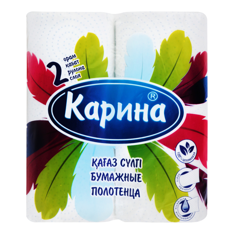 Полотенца бумажные 2х-слойные "Карина Перья" со втулкой, без обертки 2 шт в уп