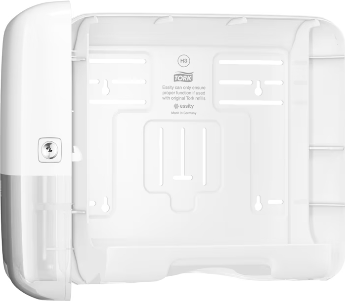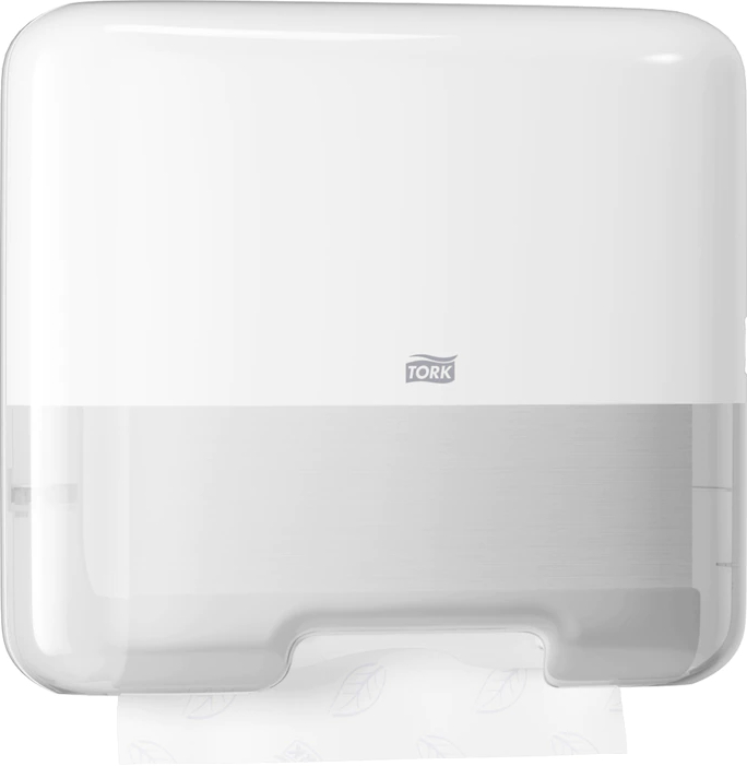 Tork мини-диспенсер для листовых полотенец Singlefold сложения ZZ и С серии Elevation подходит для туалетных комнат с низкой и средней проходимостью. Он сокращает потребление полотенец и объем отходов благодаря надежной полистовой подаче.