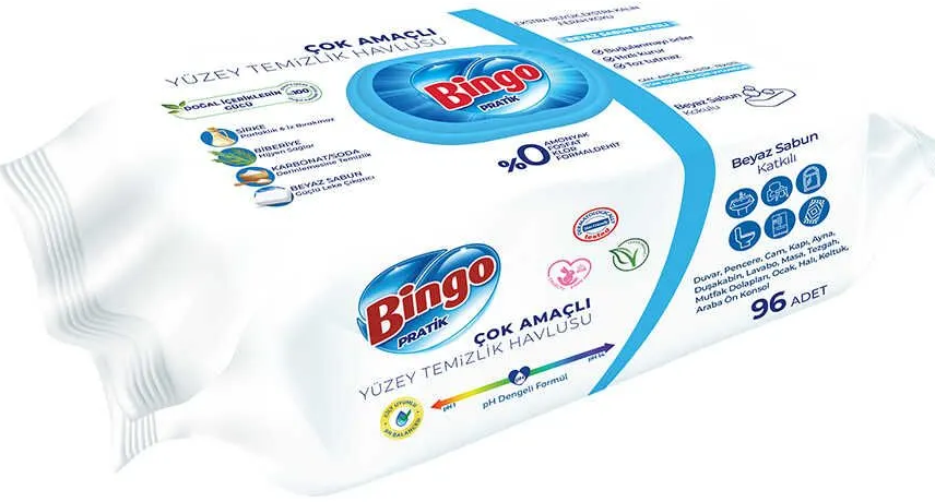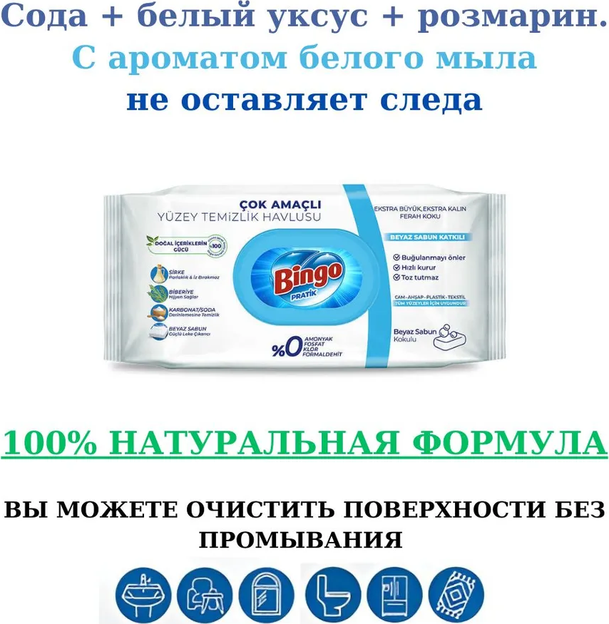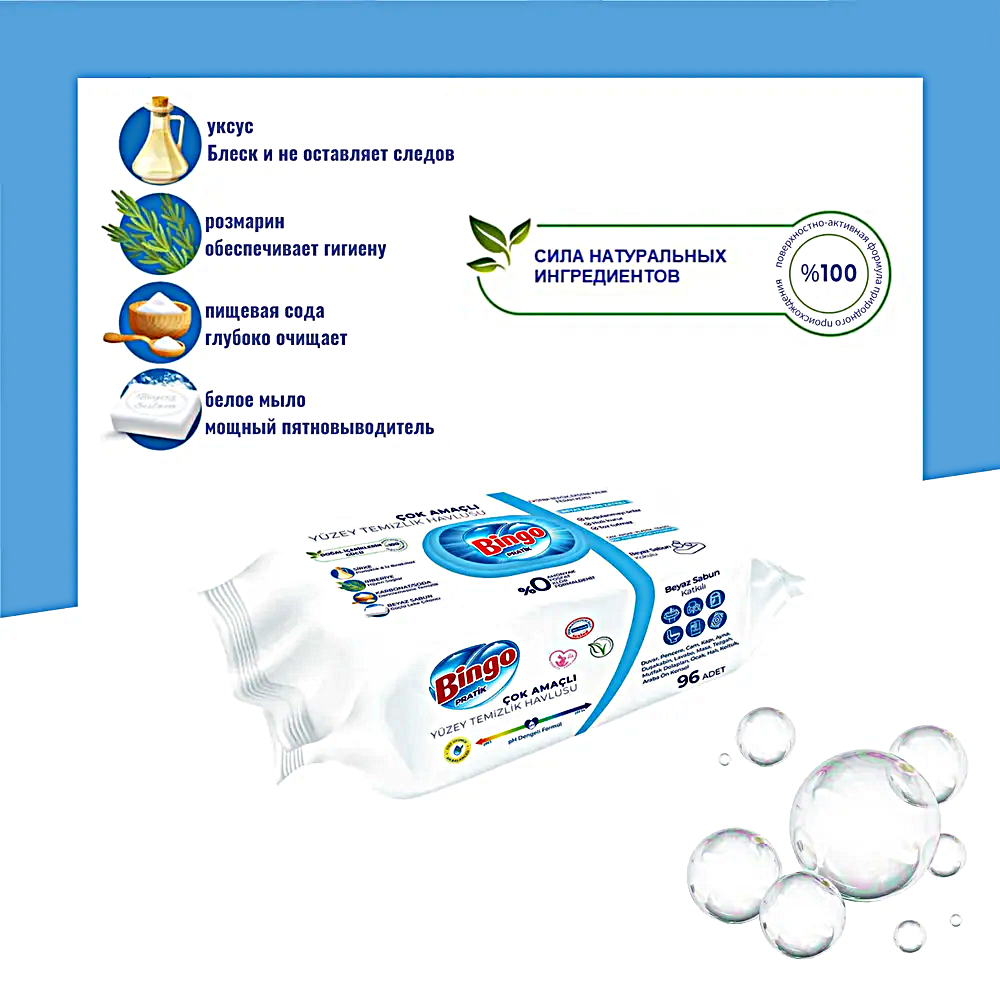 Влажные салфетки для очистки поверхности с белым мылом Bingo.
