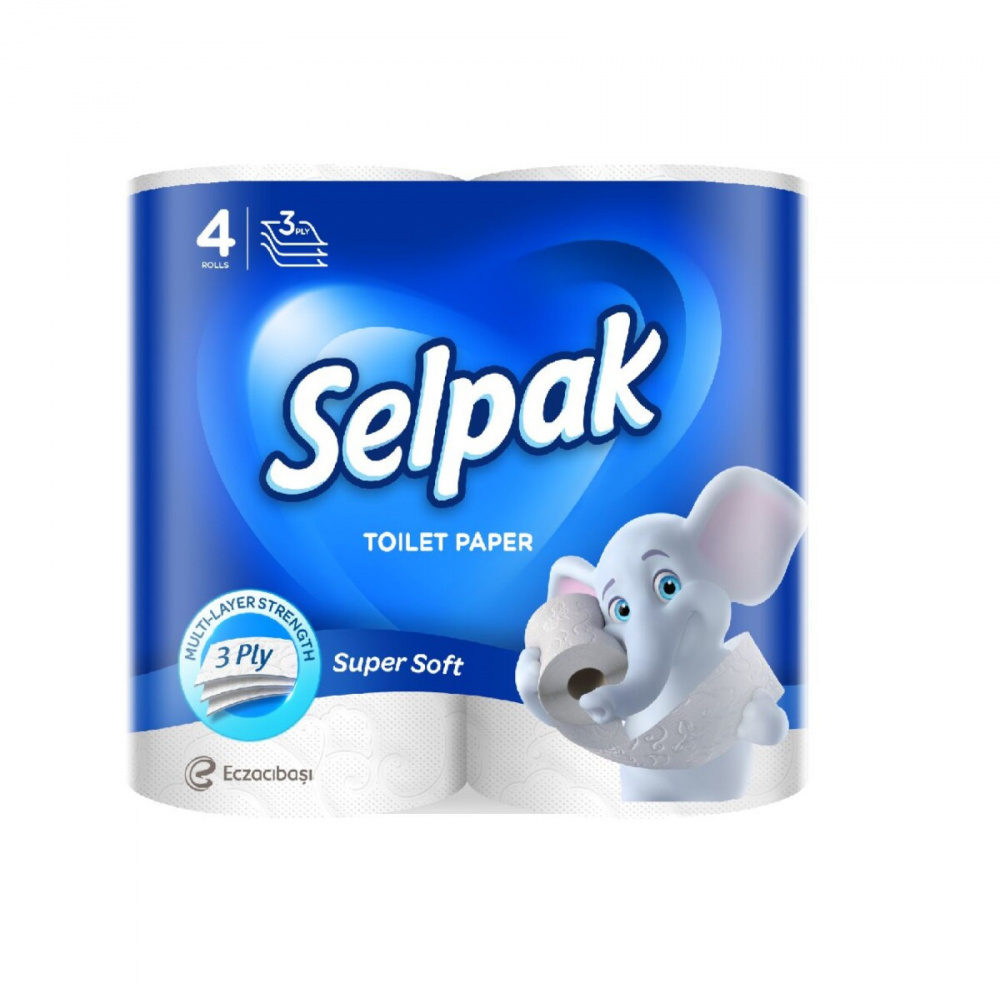 Бумага туалетная 3х-слойная, "Selpak" со втулкой, без обертки 4 шт в уп