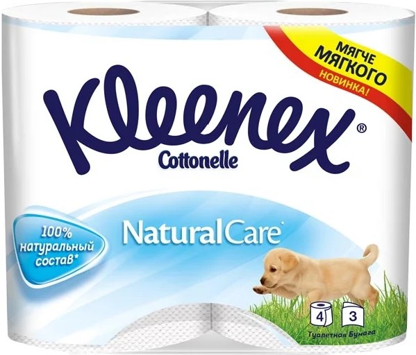 Бумага туалетная 3х-слойная, "Kleenex Natural" со втулкой, без обертки 4 шт в уп