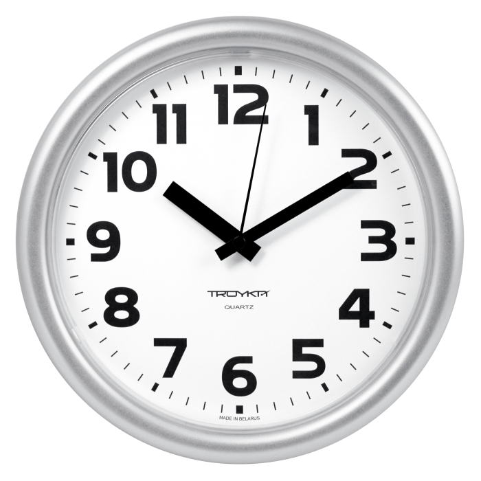 Часы d-245мм, круглые, белые, серебристый корпус, пластиковое стекло Часпром
