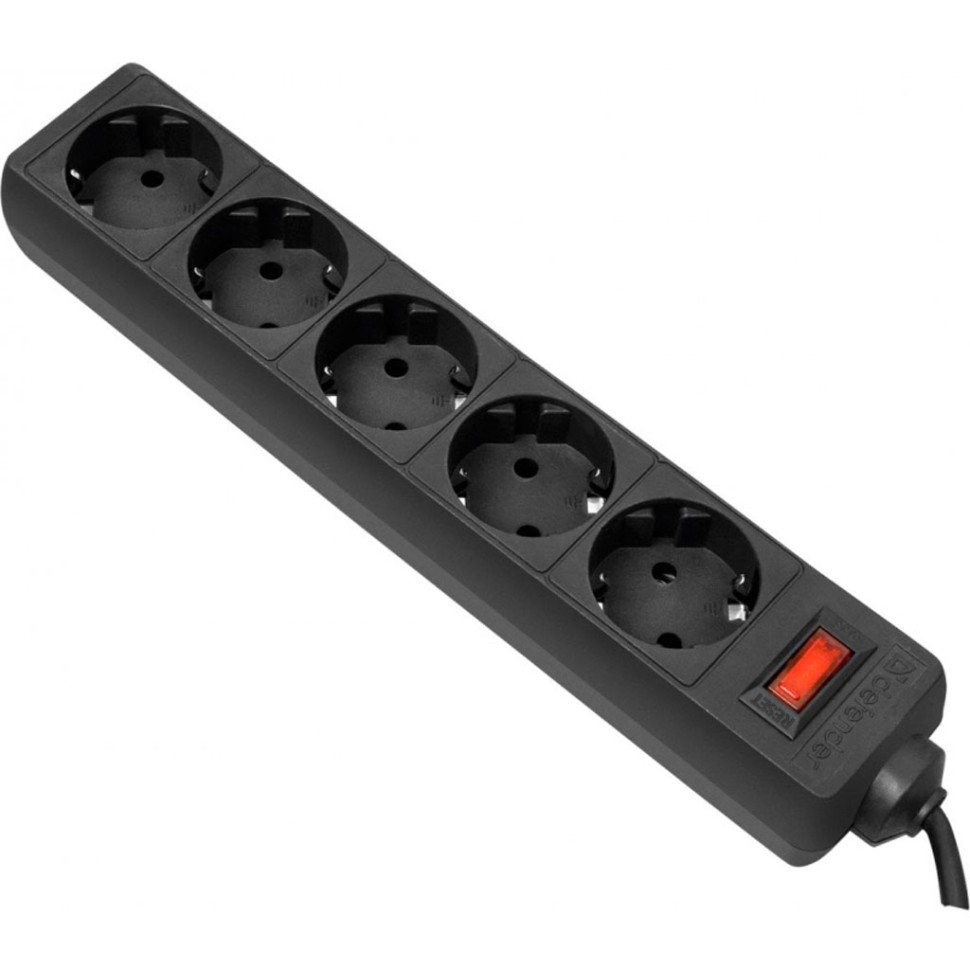 Сетевой фильтр 5 гнезд, 5 м, Defender ES 5.0, черный