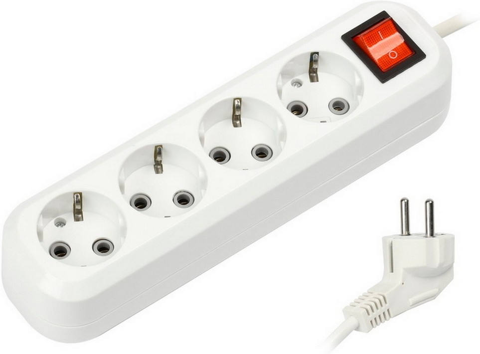 Сетевой фильтр 4 гнезда, 3 м, Smartbuy с выкл. и заземл. ПВС 3х1,0 белый