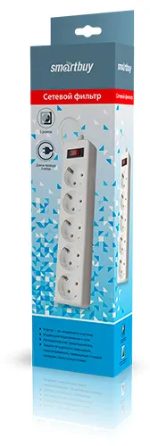 Сетевой фильтр 5 гнезд, 3 м, Smartbuy с заземл., 10А, 22 ПВС 3x0,75, белый